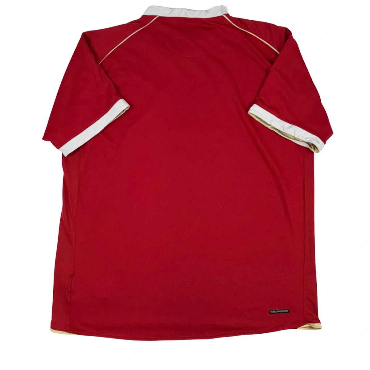 Note IFS : 8/10 – Très bon état général pour ce maillot Iconic de par son sponsor. Celui-ci est très légèrement marqué par les années. Quelques bouloches mais l’ensemble de ce maillot vintage est super bien conservé et mérite bien sa note. On pense forcément à CR7 !