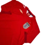 Note IFS : 10/10 – Parfait. Umbro réalise un très beau travail pour ce maillot vintage, on pense forcément à Beckham à son prime… Détail sympa au dos, on peut apercevoir les fameux Three Lions !