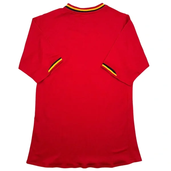 Note IFS : 10/10 – Parfaite condition. Maillot de la Belgique 2006 en version player, identique à celui porté par les pros. Pas de “Belgium” cousu comme sur la version supporter, écusson thermocollé et finitions thermos sur les bords du maillot. Sublime maillot des Diables Rouges !