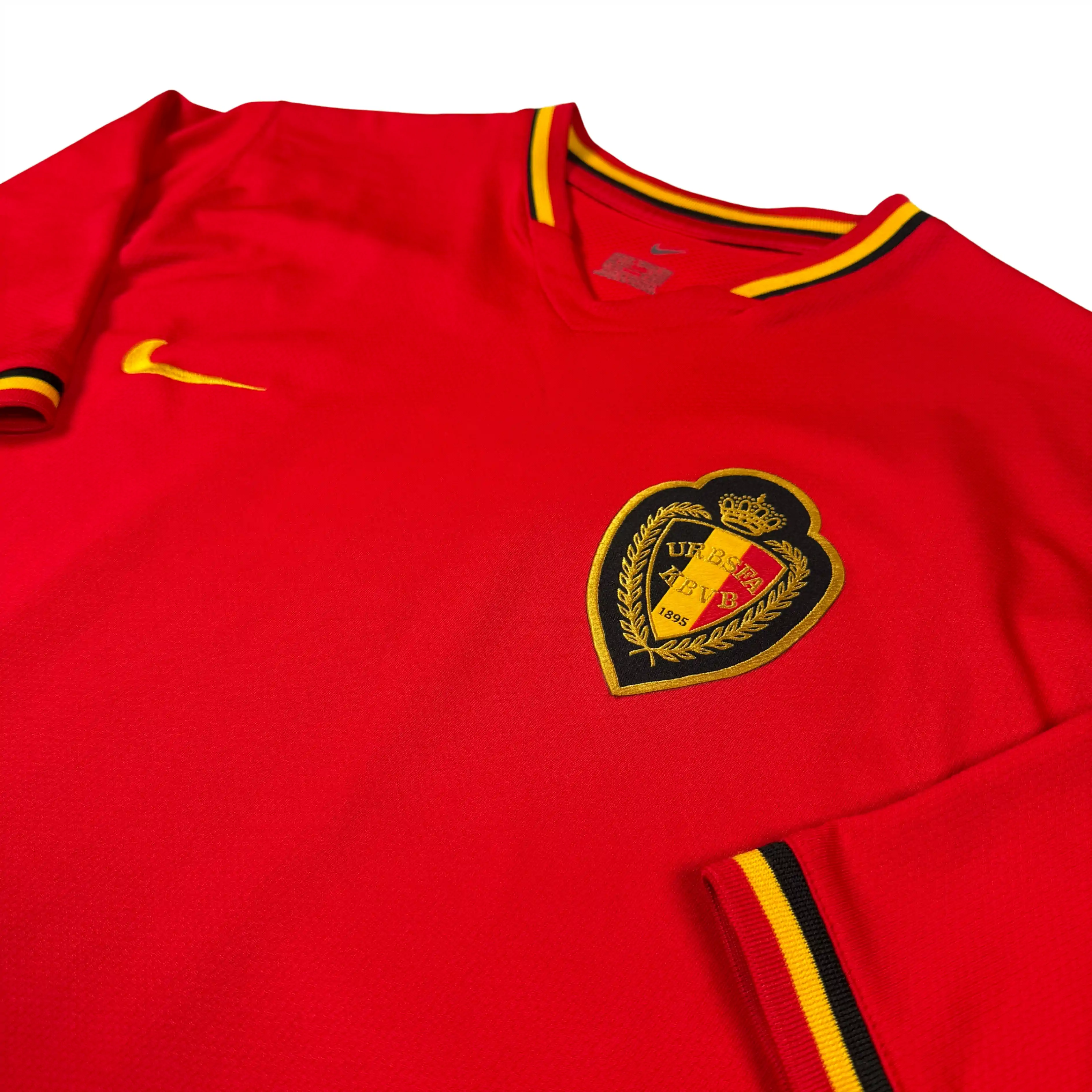 Note IFS : 9/10 – Excellente condition. Maillot de la Belgique 2006 en version player, identique à celui porté par les pros. Pas de “Belgium” cousu comme sur la version supporter, écusson thermocollé et finitions thermos sur les bords du maillot. Sublime maillot des Diables Rouges !