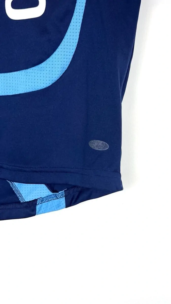 Note IFS : 9/10 – Excellent état pour ce maillot, très proche du neuf. Le logo « Climacool » s’est effacé au bas du maillot, sinon c’était un gros 10/10 ! Superbe pièce vintage qui nous rappel le grand Ajax avec l’Iconic sponsor en travers du maillot. Magnifique !