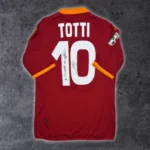 Note IFS : 9/10 – Maillot ultra rare de la Roma avec les patchs Lega Calcio et Coppa Italia, signé de la main du légendaire Francesco Totti. Une pièce exceptionnelle, avec une provenance fiable via un vendeur de confiance que nous connaissons personnellement. Un vrai trésor pour les collectionneurs.
