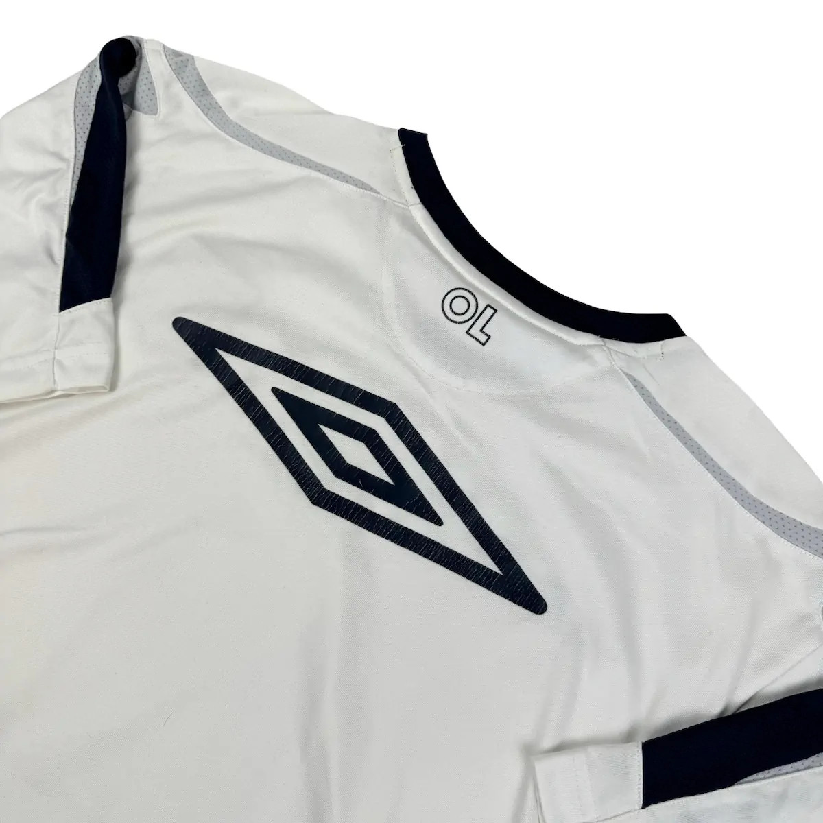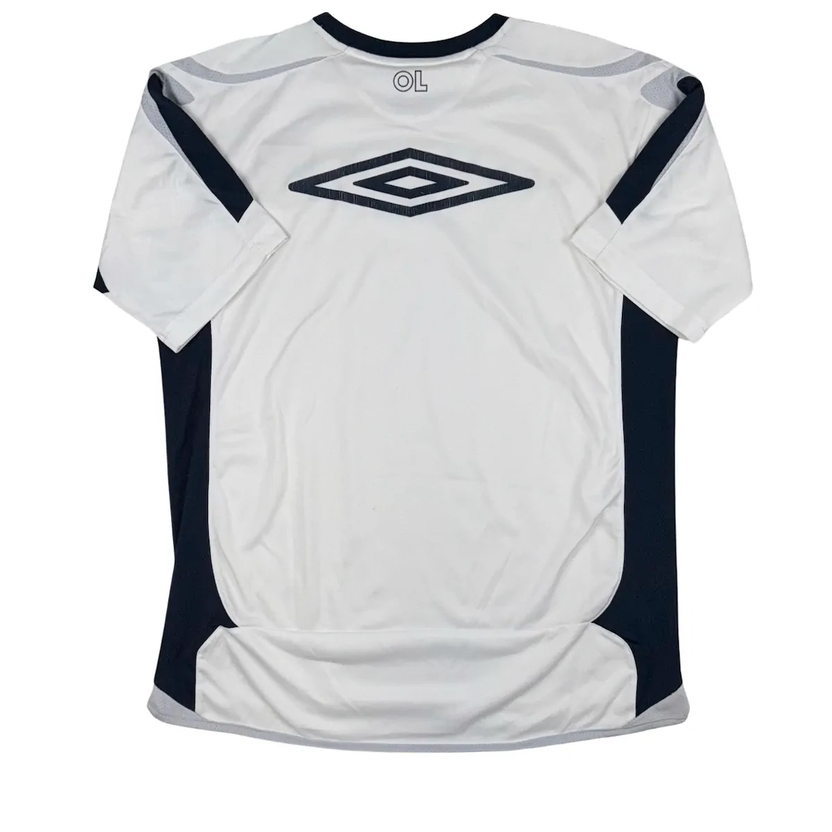 Note IFS : 8/10 – Très bon état général, quelques discrètes petites traces et le logo Umbro au dos est un peu craquelé. (voir photos). Idéal pour la collection ou pour l’entrainement à moindre frais ! Superbe maillot d’entraînement de la grande époque lyonnaise.