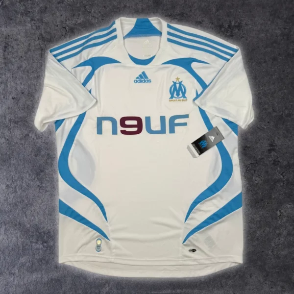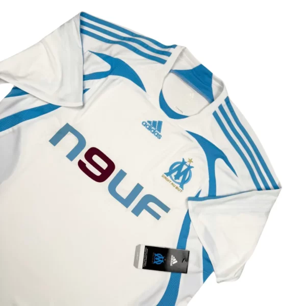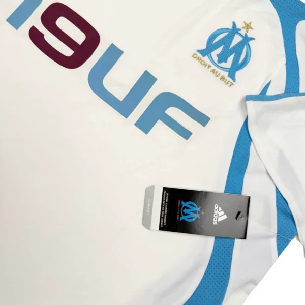 Note IFS : Neuf + étiquettes – Maillot de l’OM datant de 2007 et encore neuf avec ses étiquettes d’époque. Une petite trace due au stockage est à noter, ça devrait partir facilement au lavage. On pense à Djibril Cissé !