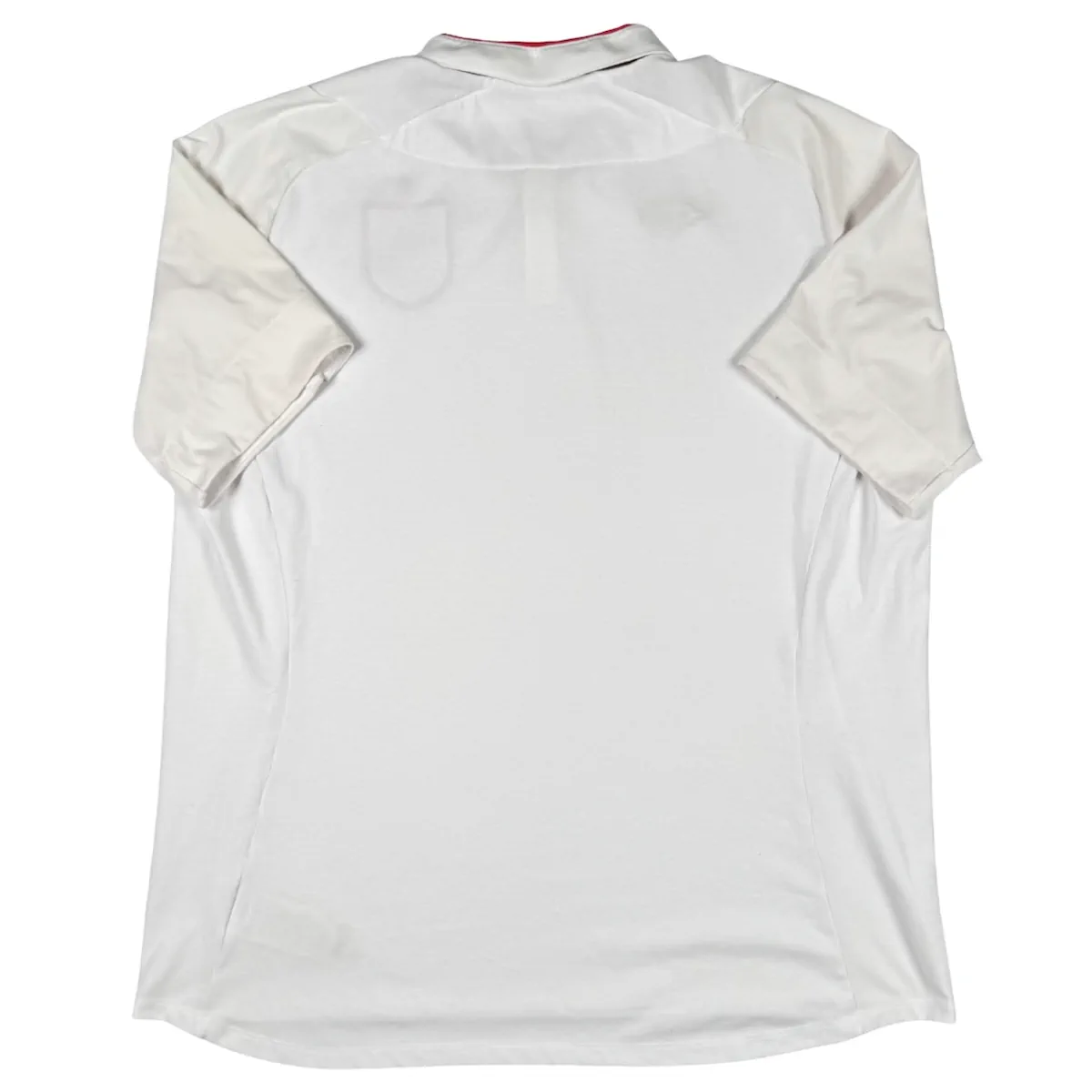 Note IFS : 8/10 – Bon état général pour ce maillot Umbro des Three Lions. Le blanc a un peu perdu de son éclat. Une pièce qui rappel tous les grands noms passés par la sélection anglaise : Beckham, Scholes, Gerrard, Terry et compagnie.