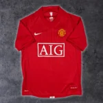Note IFS : 10/10 – Maillot mythique de Manchester United saison 2007-09, en parfait état. Très rare de retrouver le sponsor AIG et les bandes blanches au dos aussi bien conservés. Iconic, historique, sûrement l’un des plus beaux et des plus symboliques maillots de l’histoire des Red Devils.