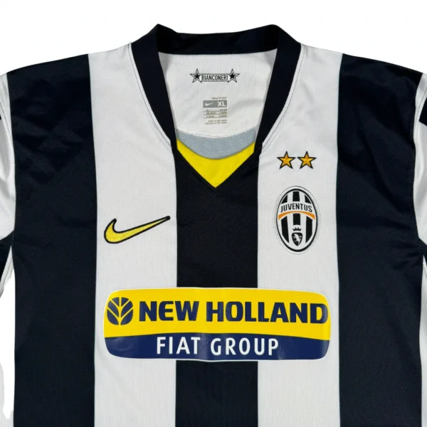 Note IFS : 9/10 – Sponsor un peu plié mais intact, petite trace sur la manche gauche, le reste est impeccable. Ancien écusson et swoosh Nike brodés en noir et jaune, super stylés. Ce rare maillot vintage mérite largement son 9/10 et fait forcément penser à Del Piero.