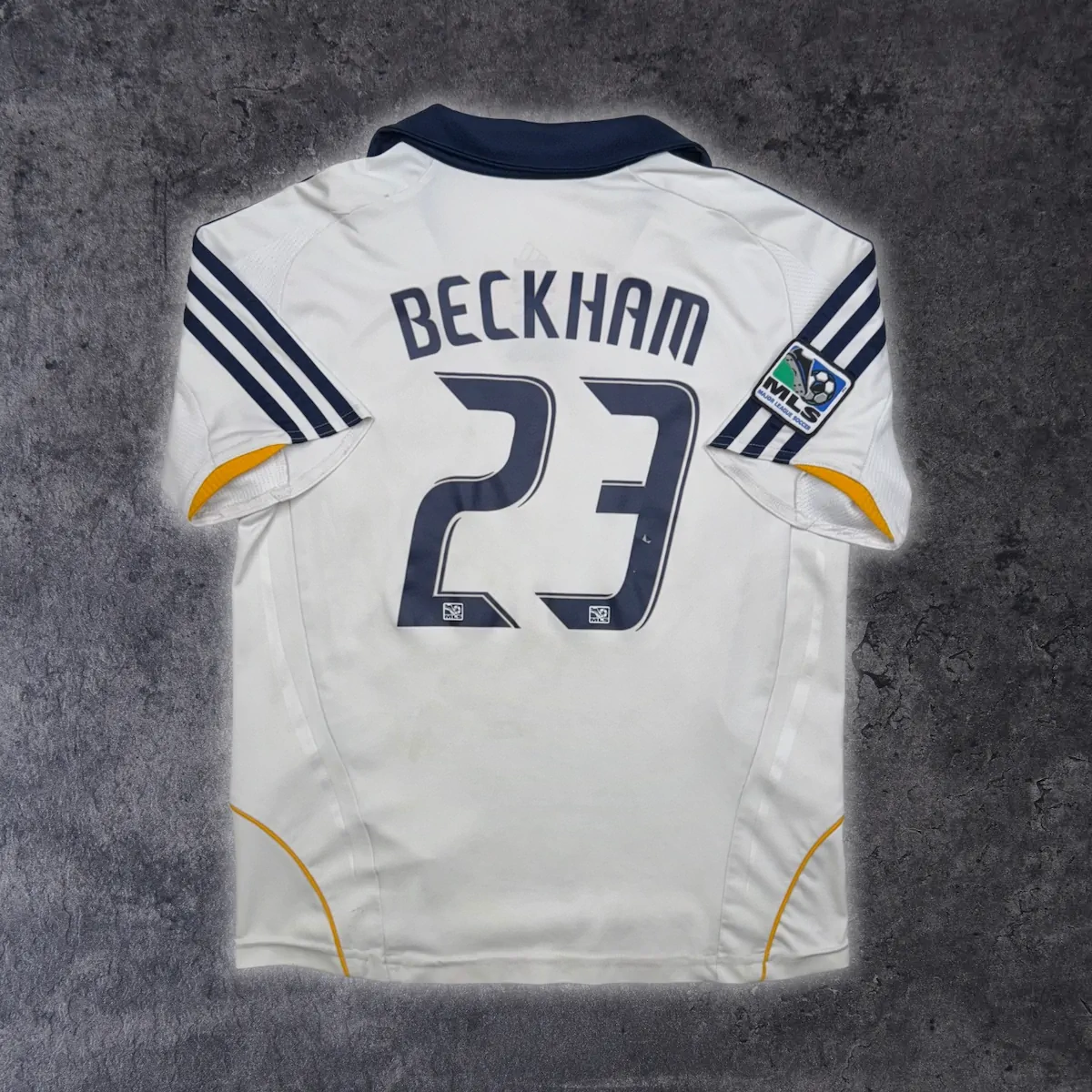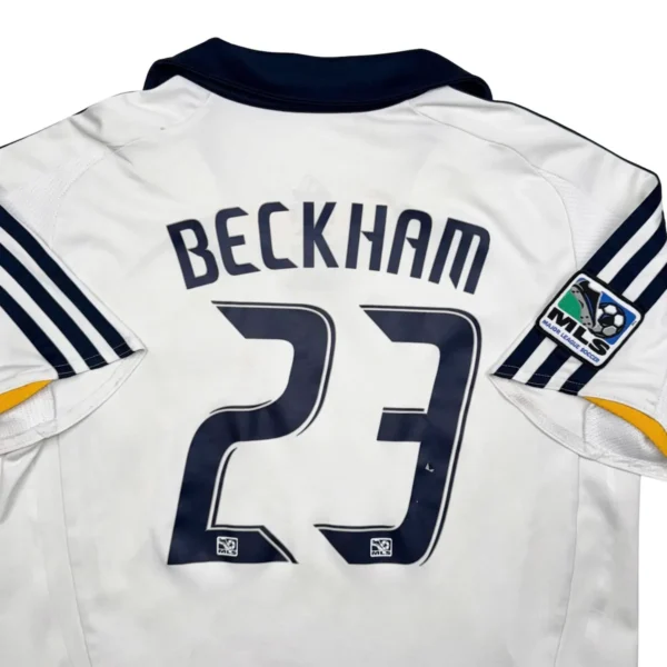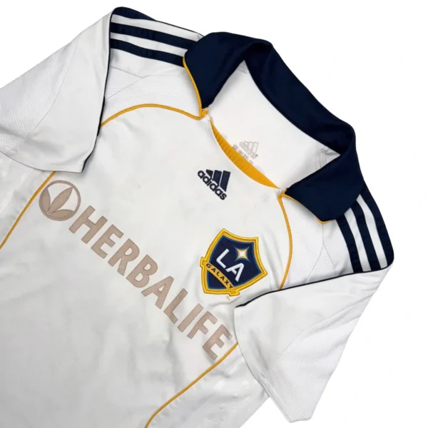 Note IFS : 7/10 – Maillot officiel des LA Galaxy floqué Beckham, taille 10 ans. Sponsor retiré proprement, petit défaut sur le 3 du flocage. Parfait pour flinguer à l’entraînement avec un vrai maillot Iconic sur le dos. Pas besoin de claquer 150€ pour un Beckham !