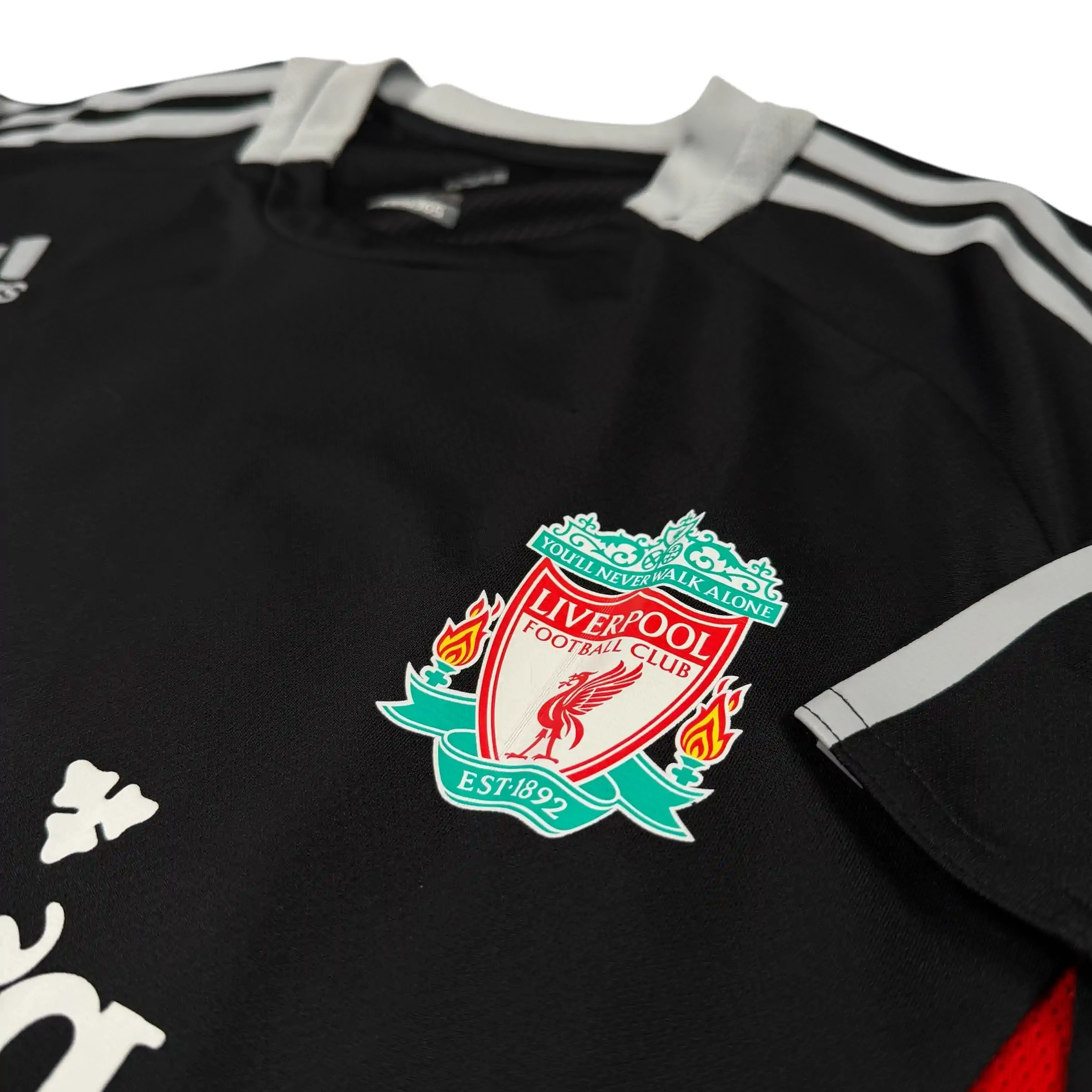 Note IFS : 9/10 – Maillot d’entraînement des Reds de Liverpool signé Adidas, superbe modèle avec tous les éléments floqués, sponsor Carlsberg Iconic en parfait état, une pièce propre qui rappelle forcément l’époque Gerrard et Fernando Torres.