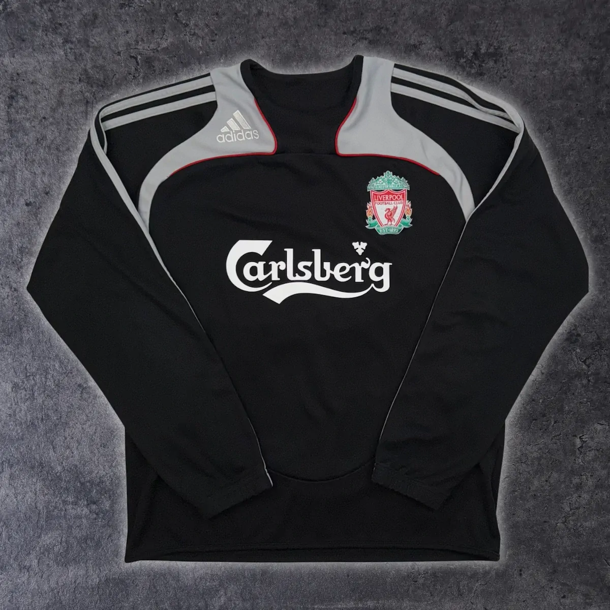 Note IFS : 9/10 – Excellente condition pour ce sweat-shirt Adidas de Liverpool bien vintage. L’Iconic sponsor Carlsberg nous rappelle Steven Gerrard, Torres et compagnie !