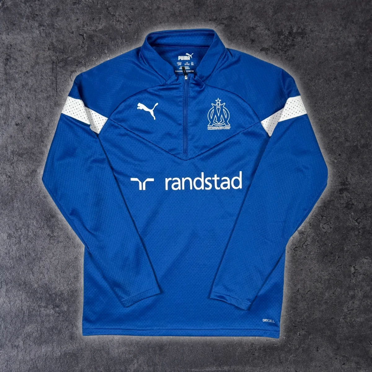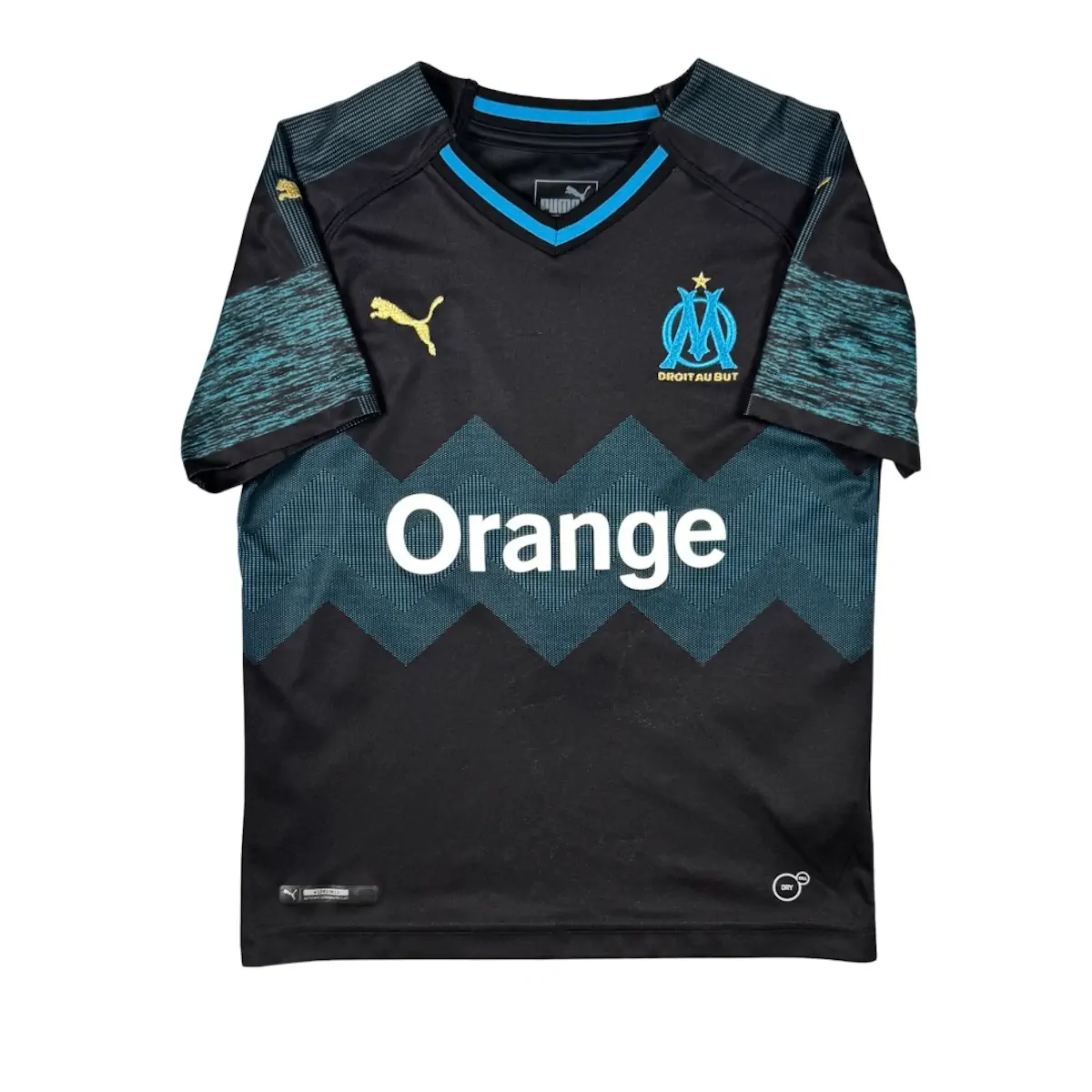 Note IFS : 8/10 – Très bon état général, quelques accrocs sont à noter. Le sponsor est en feutrine et est bien conservé. Beau design par Adidas ! Logo Adidas et écusson de l’OM parfaits.