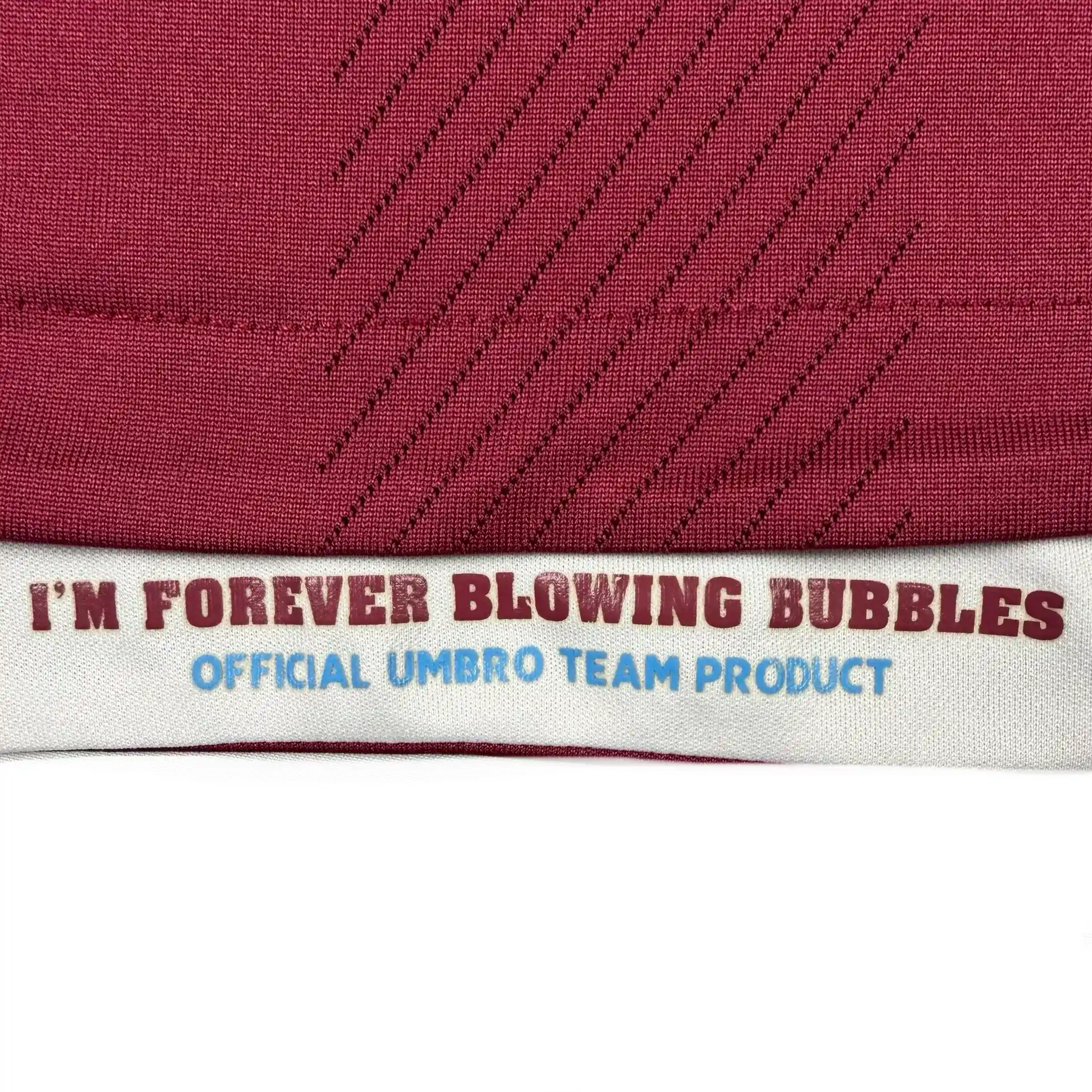 Note IFS : 9/10 – Maillot rétro de West Ham United avec le sponsor en feutrine, pièce de presque 20 ans dans un état exceptionnel, gros kiff sur le détail en bas du maillot avec les petites bulles, impossible de ne pas penser au film Hooligan, si t’es un ancien tu as la réf.