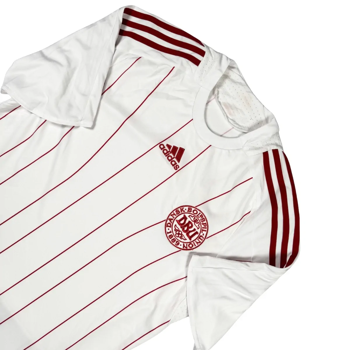 Note IFS : 9/10 – Maillot extérieur du Danemark en excellente condition générale, seul le logo Climacool est effacé au bas du maillot. Pas dérangeant du tout au porté. Il faut le savoir pour le voir. Maillot atypique !