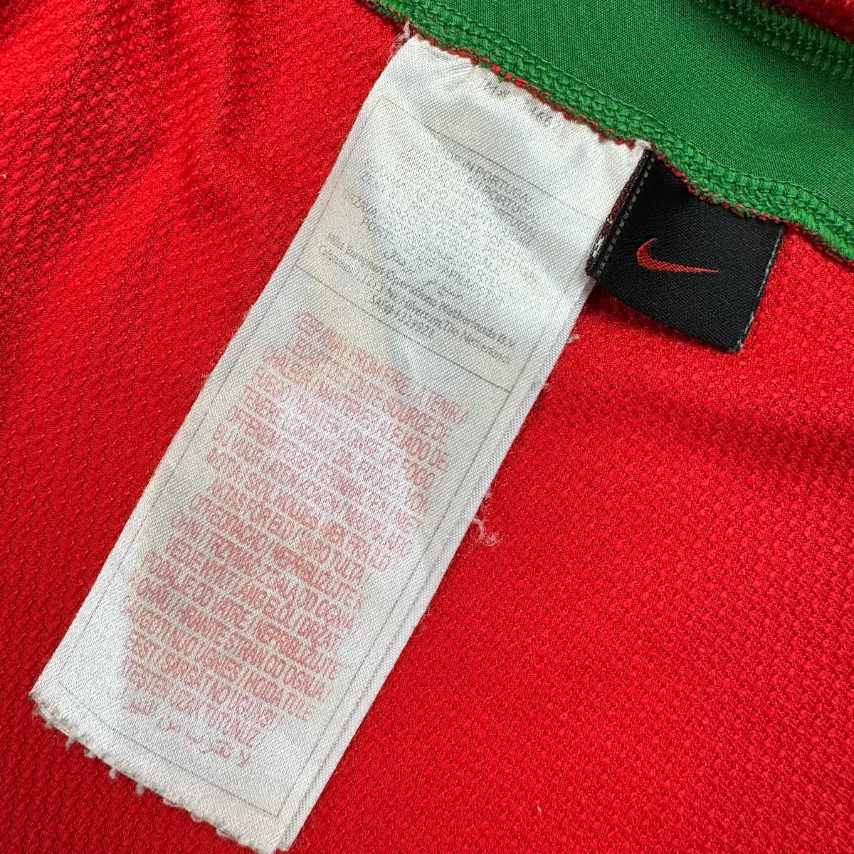 Note IFS : 8/10 – Très bon état général pour cette pépite portugaise. Quelques bouloches sont à mentionner et un minuscule accroc au dos (voir photos). Une magnifique pièce signée Nike qui nous rappelle directement CR7 avec ses cheveux longs dans la nuque !