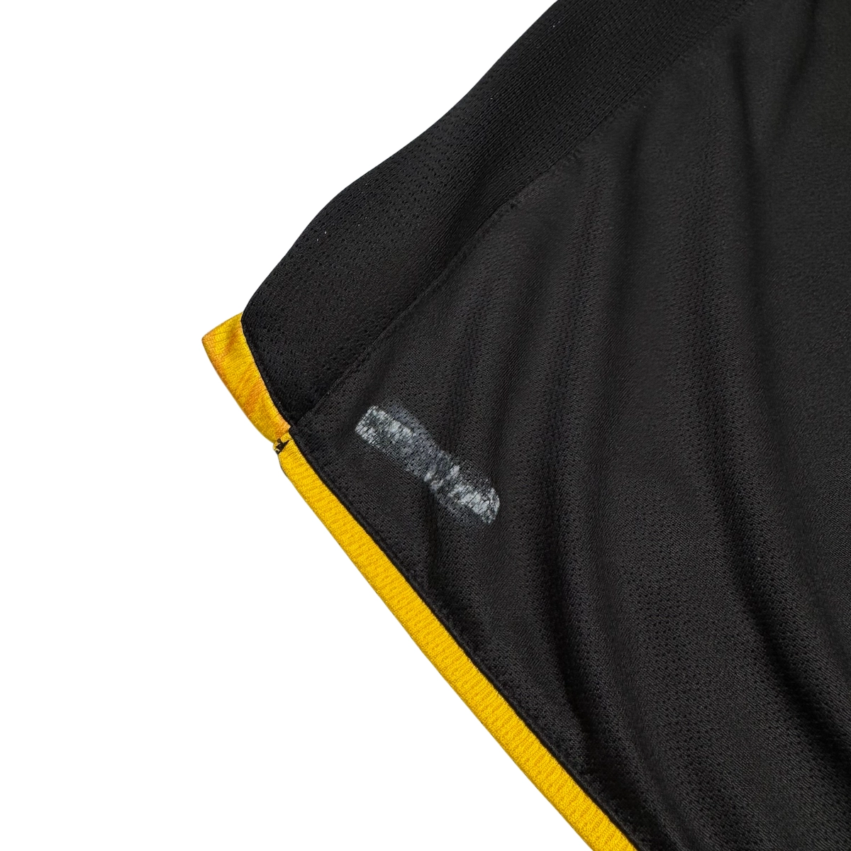 Note IFS : 9/10 – Maillot de l’AEK Athènes en set complet avec short et chaussettes, neufs avec étiquettes. Le maillot est noté 9/10, seul détail à signaler : l’étiquette Puma au bas du dos s’est effacée, sans impact sur le rendu, le reste est nickel. À noter que le short présente une tache. Ensemble très rare, et encore plus difficile à trouver en set complet comme celui-ci, une vraie pièce pour les collectionneurs.