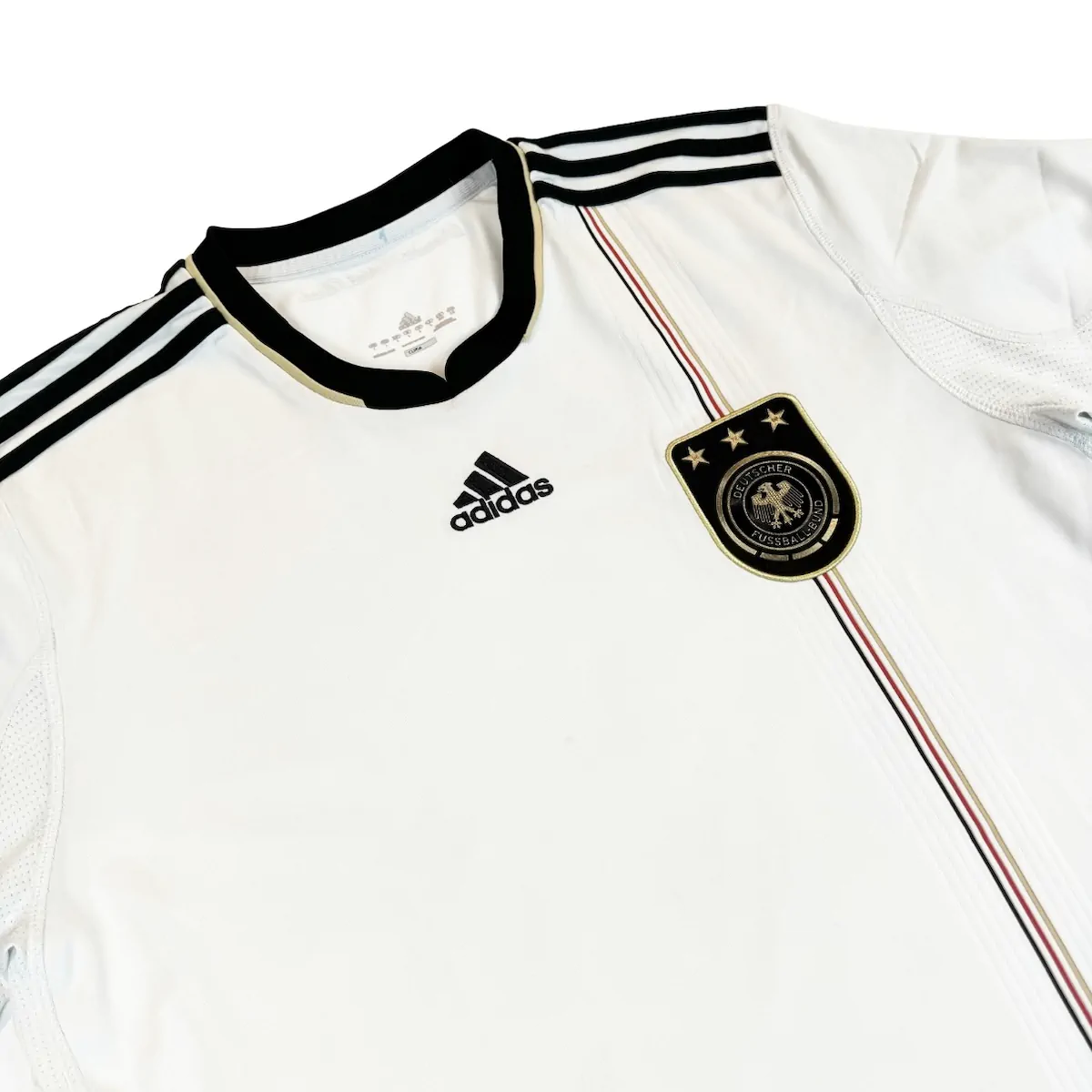 La Mannschaft brille avec des performances au dessus de la moyenne lors de la Coupe du Monde 2010 qui se déroule en Afrique du Sud. Guidée par une stratégie de jeu impressionnante et une cohésion d’équipe exemplaire, l’Allemagne atteint les demi-finales. Les hommes de Joachim Löw vont s’incliner devant l’Espagne, qui gagnera d’ailleurs cette édition de la CDM après avoir gagné l’Euro en 2008 ! Les talents émergents tels que Müller, Özil, Reus ou Kuranyi.