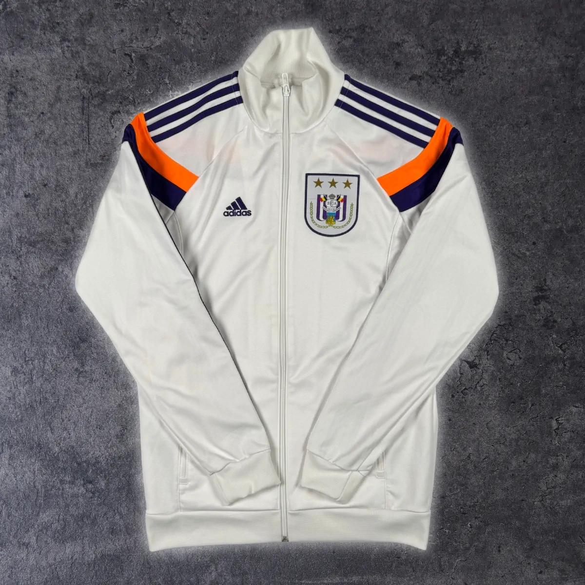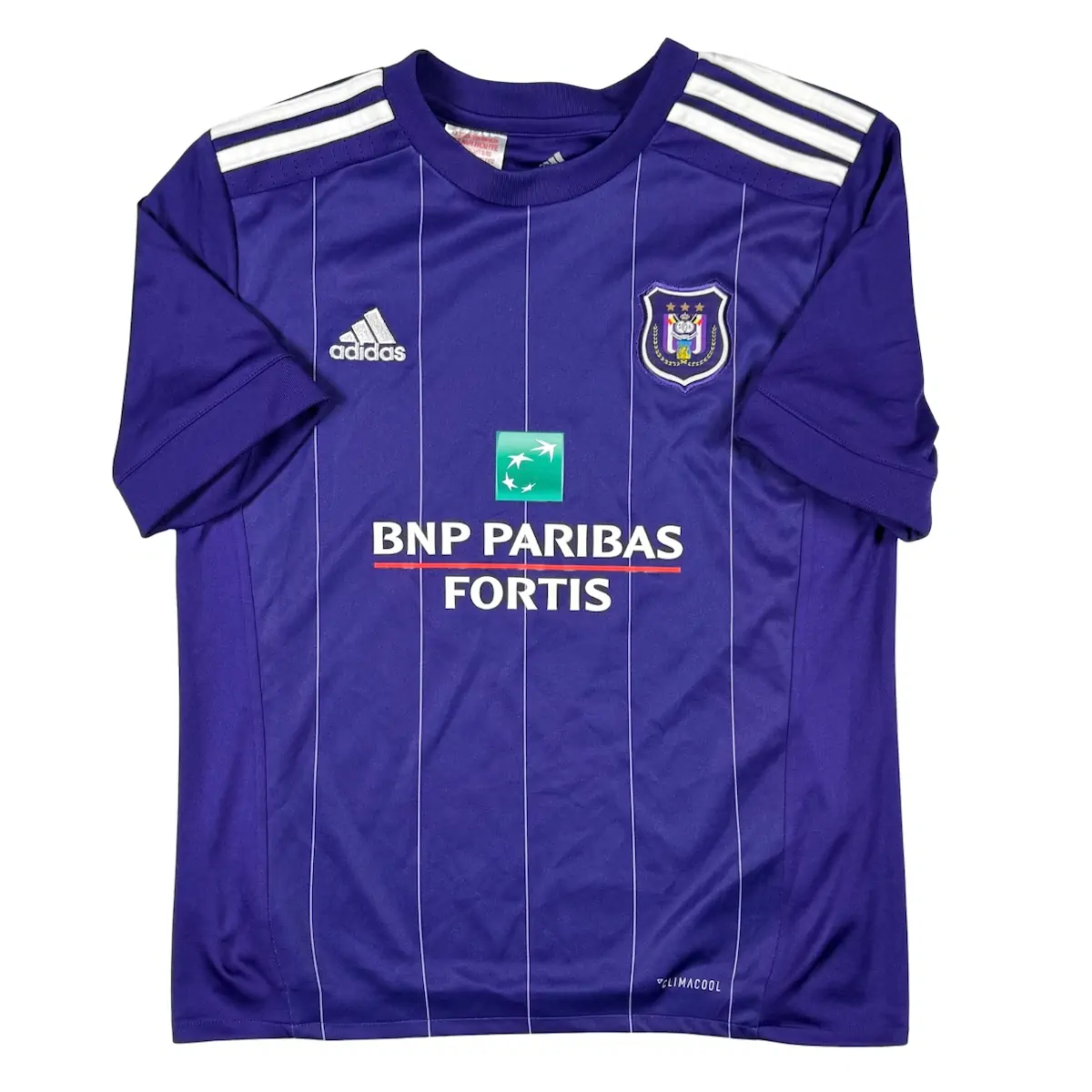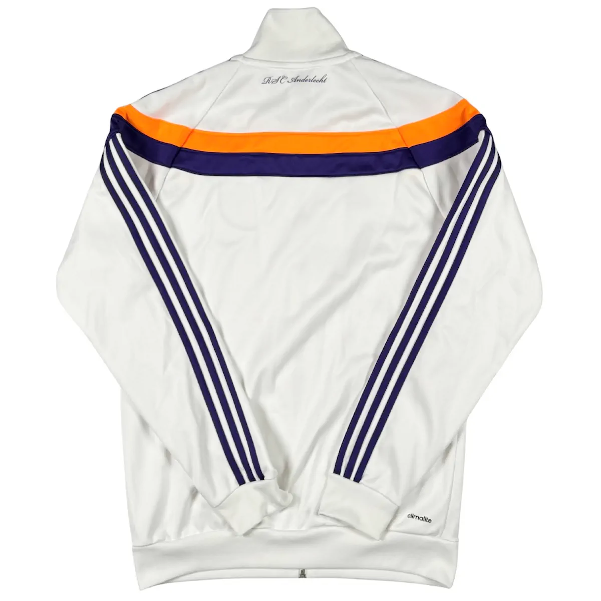 Note IFS : 8/10 – Très bon état général, quelques petites taches sont à mentionner. Le flocage officiel de Mbark Boussoufa est hyper bien conservé. C’est d’ailleurs ce rare flocage qui fait principalement la valeur de ce maillot rétro du RSCA !