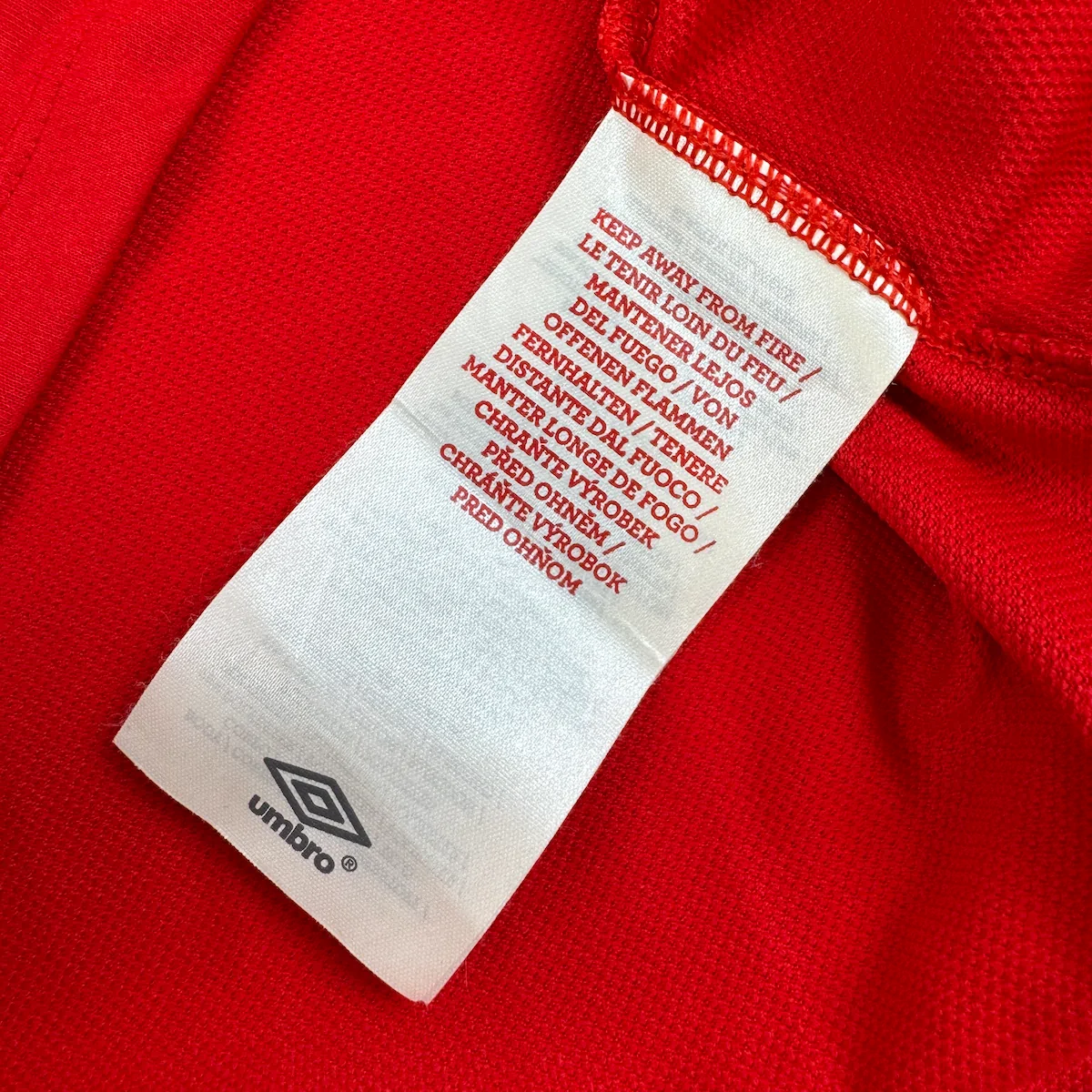 Note IFS : 10/10 – Parfait état pour ce maillot de la gamme « Tailored By Umbro » (taille plus fit). L’écusson et le logo Umbro sont brodés et en parfait état. Un classique simple et efficace.