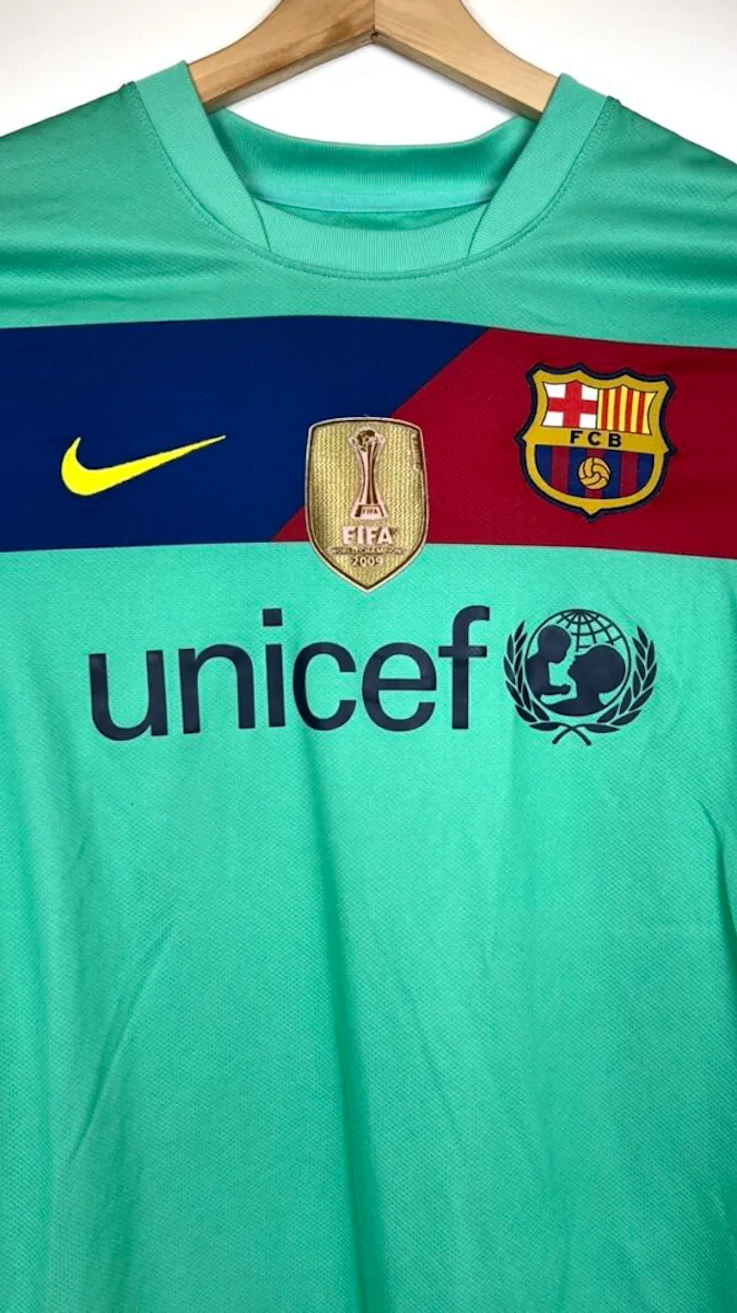 Note IFS : 9/10 – Excellent état, seul le flocage est un brin usé (voir photos) rien de bien grave. Ce rare maillot du Barça est historique de par son histoire (voir note ci-dessus). Magnifique de par sa couleur, une réalisation incroyable par Nike ! Á noter la présence des patchs Liga et Coupe du Monde des clubs remportée en 2009 par le Barça. Une pépite qui comporte le rare flocage officiel de Piqué pour couronner le tout !