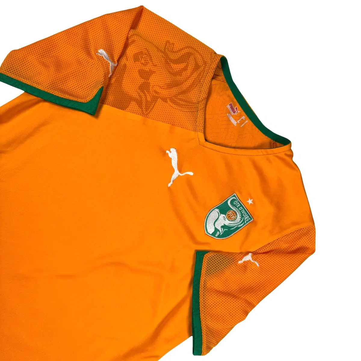 Note IFS : 9/10 – Superbe maillot rétro de la Côte d’Ivoire en excellent état. Très proche du 10/10. On pense forcément à Didier Drogba.