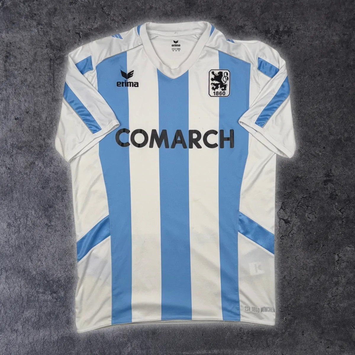 Note IFS : 9/10 – Rare maillot vintage de Munich 1860 avec sponsors légèrement usés mais un état général excellent. L’écusson du club en feutrine est impeccable, comme neuf, ce qui rend cette pièce encore plus précieuse pour les collectionneurs.