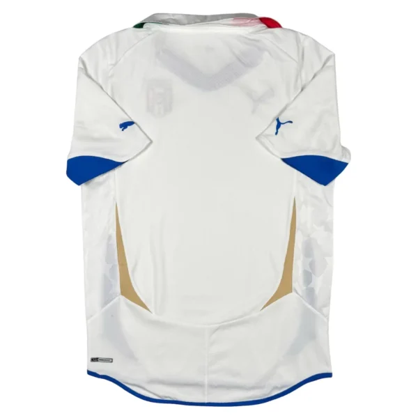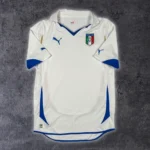 Note IFS : 9/10 – Excellente condition. Les logos sont brodés et en parfait état. Un superbe maillot rétro de 2010 au design travaillé par Puma. On pense forcément à Pirlo et compagnie.