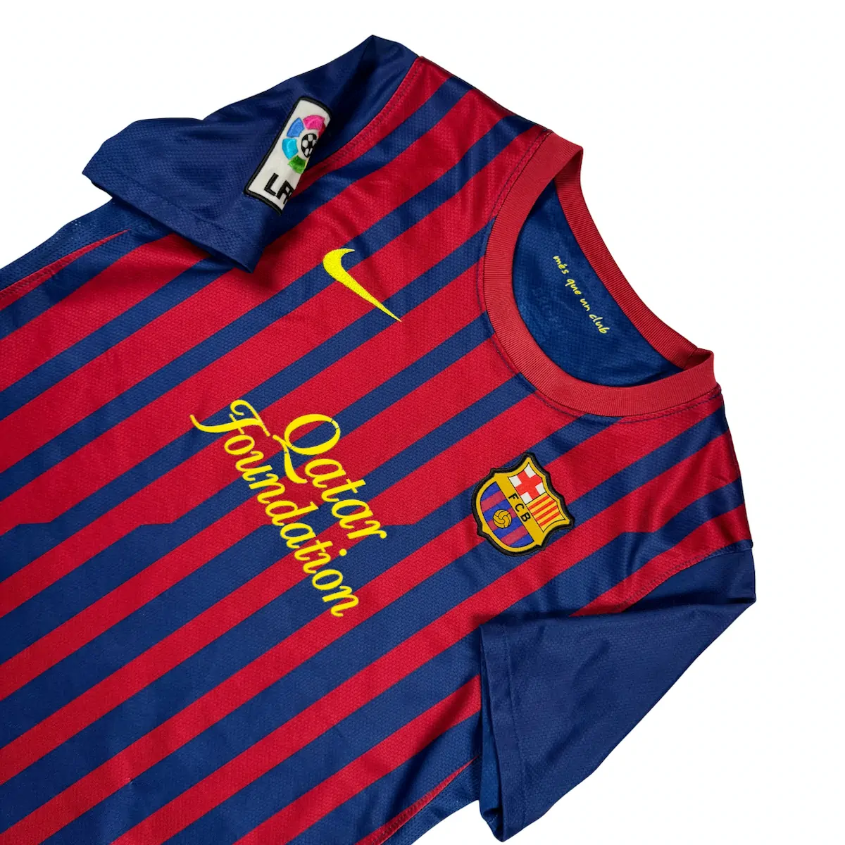 Note IFS : 9/10 – Maillot rétro du Barça en taille enfant 12-13 ans, super propre, avec juste le sponsor un peu craquelé et la petite bande argentée de l’étiquette Nike qui a sauté. 9/10 mérité tellement les défauts sont minimes.