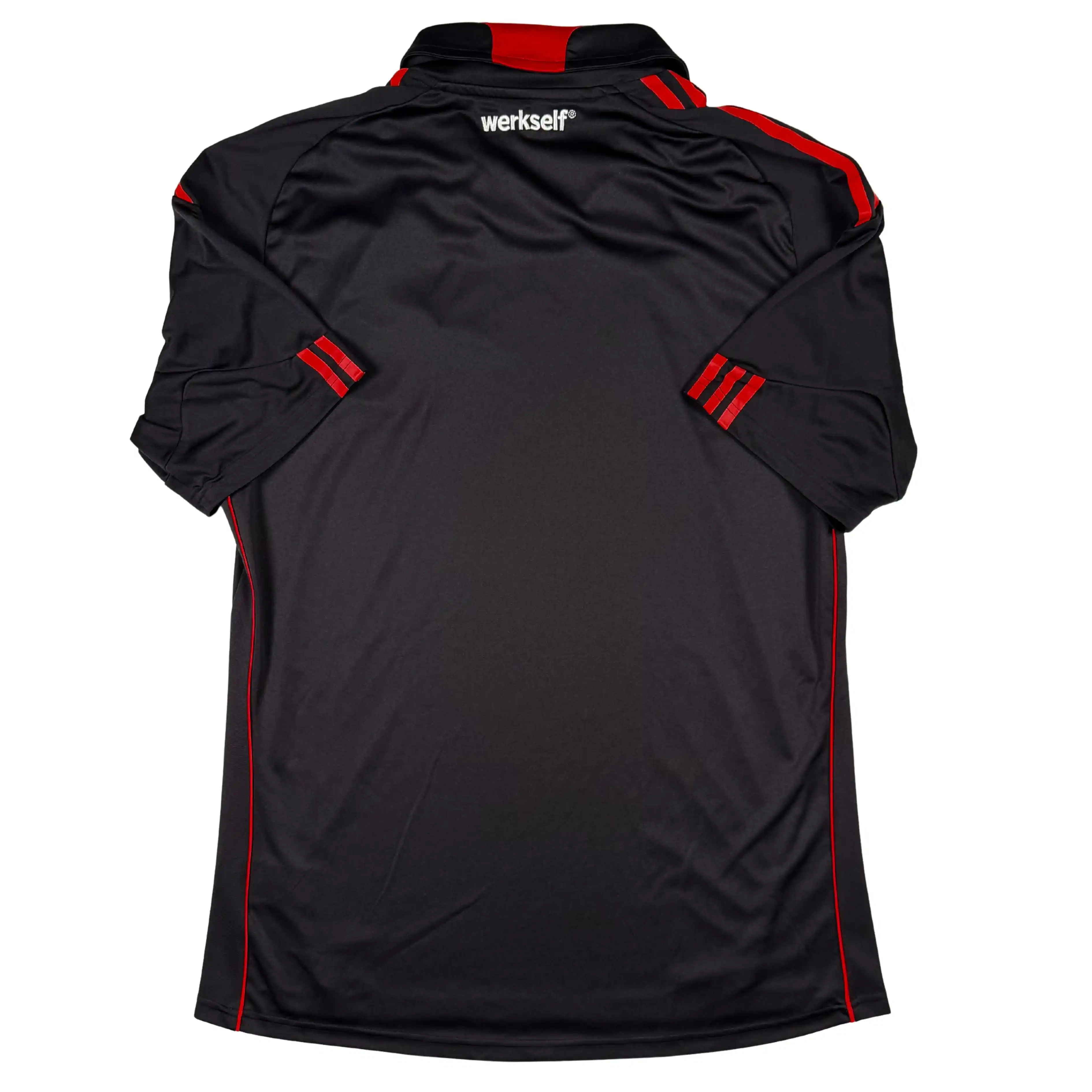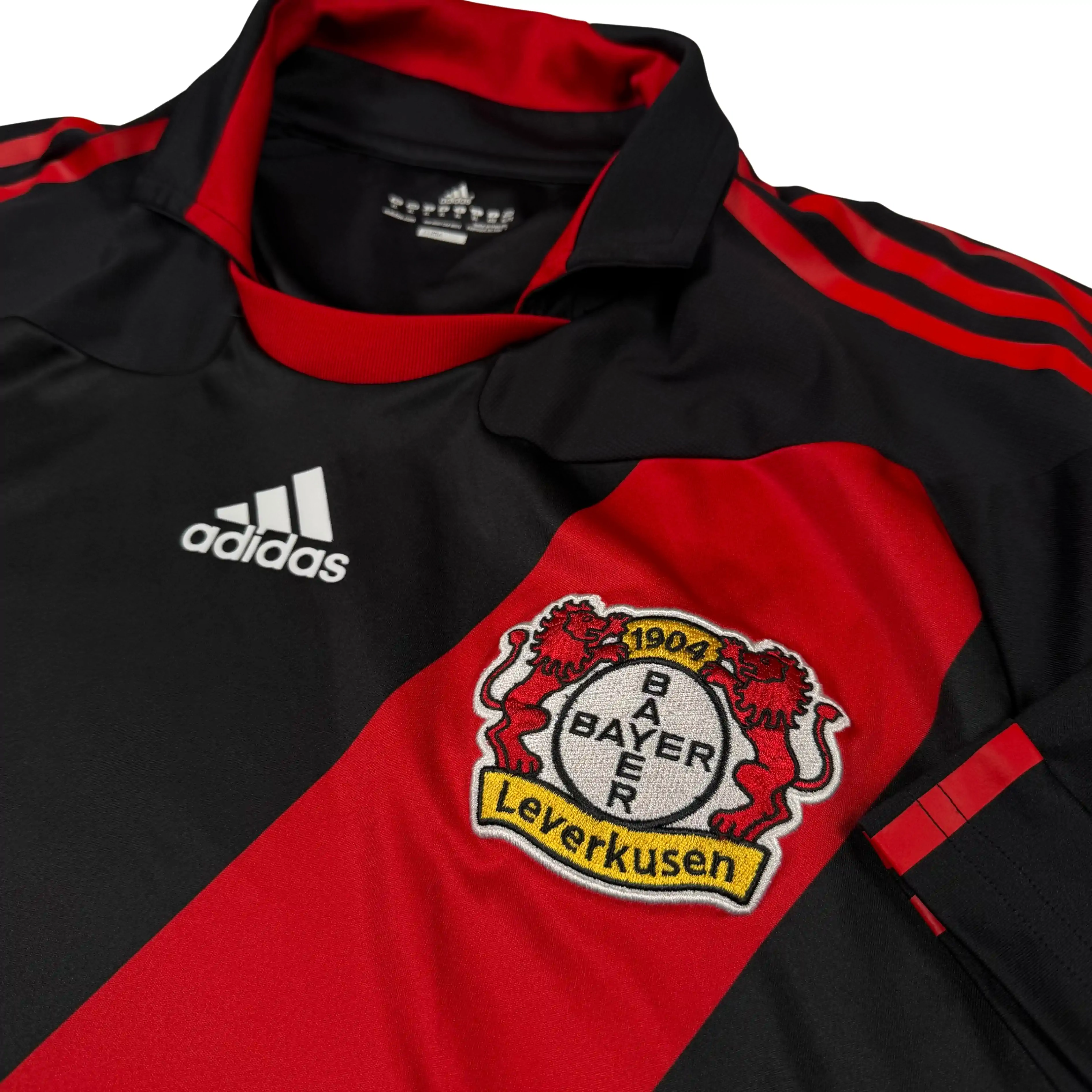 Note IFS : 8/10 – Maillot du Bayer Leverkusen provenant d’un ancien joueur du club, donc issu du stock pro. Version sans sponsor, et surtout équipée de la technologie Formotion de Adidas, habituellement réservée aux joueurs professionnels et différente du Climacool grand public. Logo Adidas épais et thermocollé, bandes Adidas floquées sur les épaules et non brodées. Tout est pensé pour la légèreté, la liberté de mouvement et la performance. Une configuration rare, en parfait état, clairement au-dessus d’une version standard.