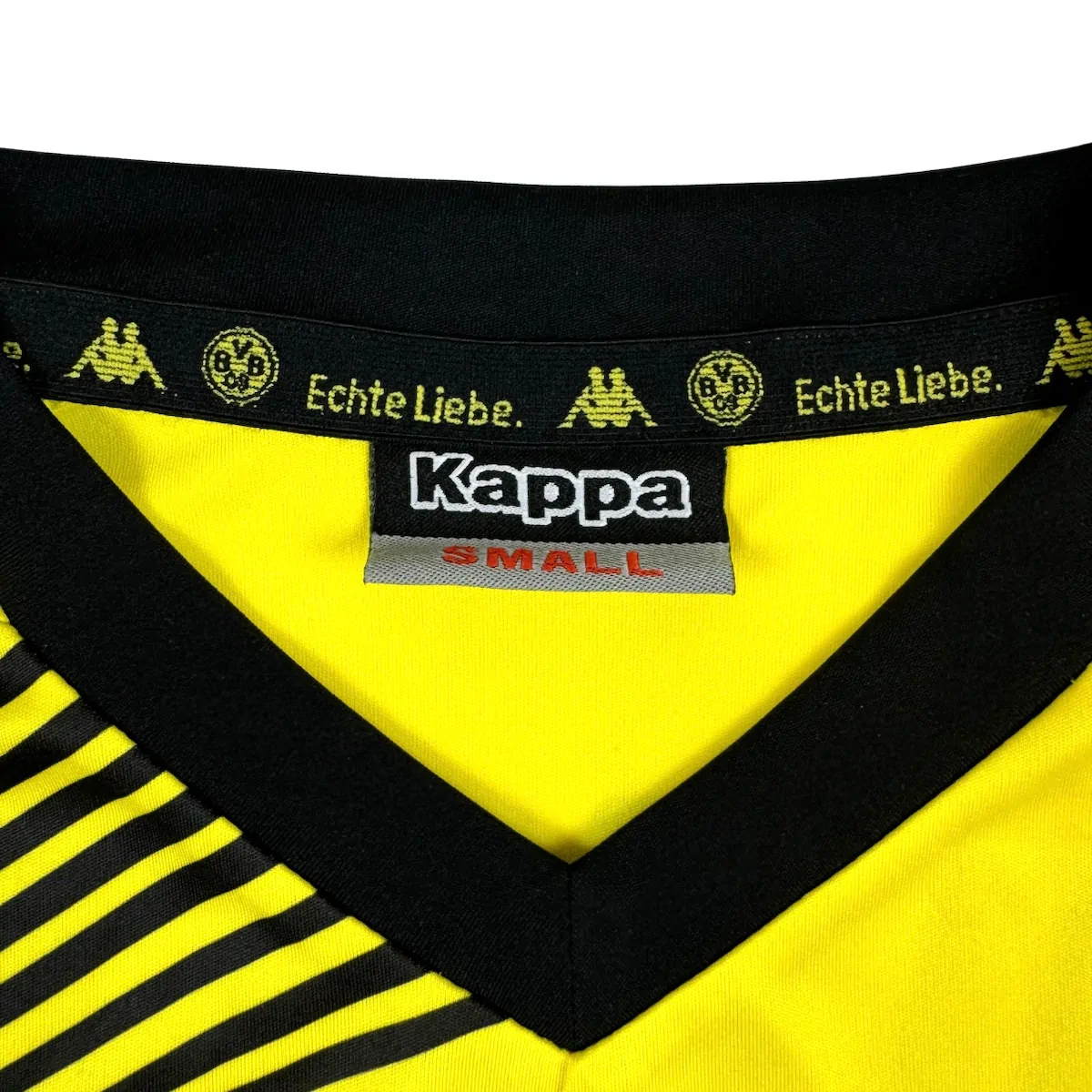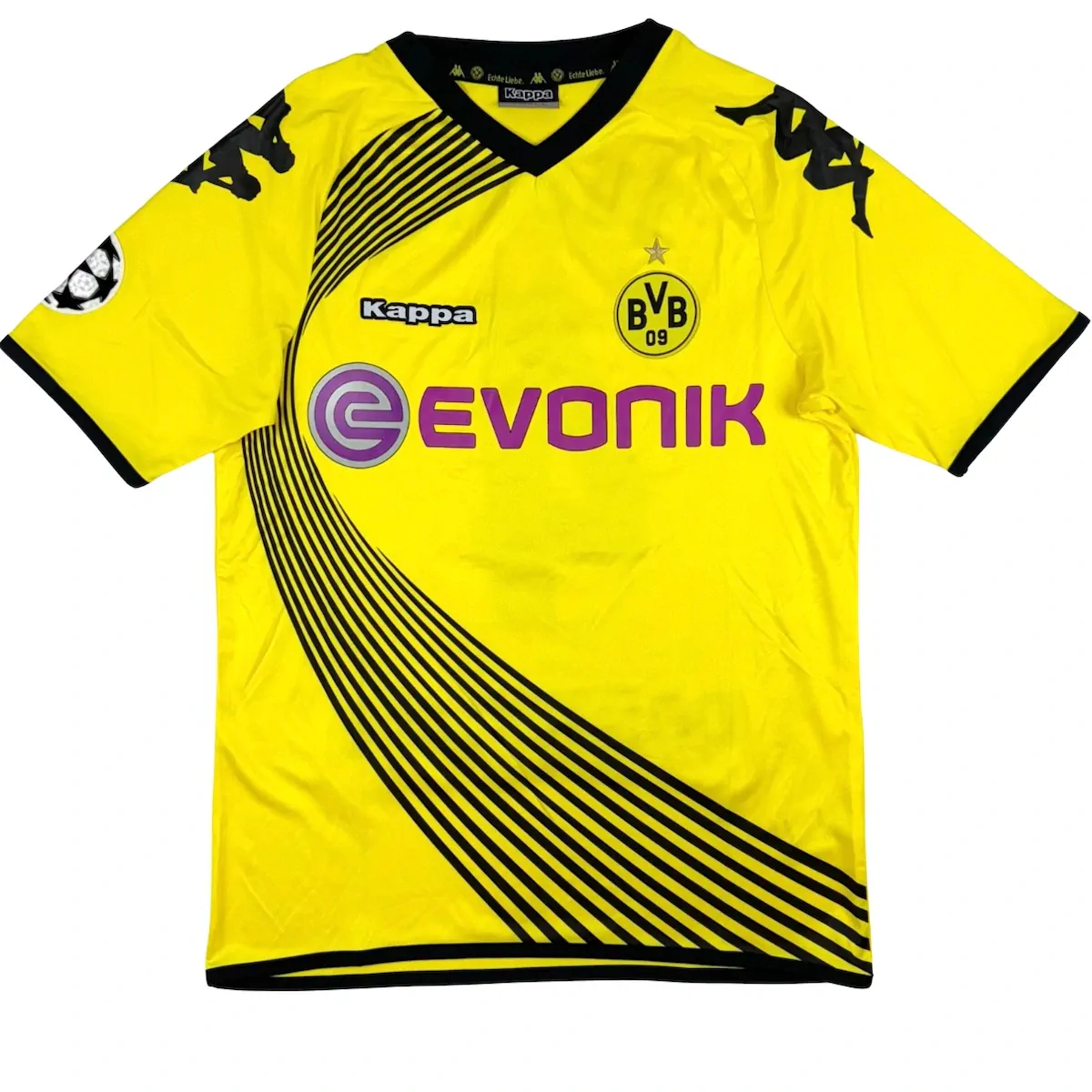 Note IFS : 10/10 – Parfait. Il s’agit d’un maillot historique pour tous supporters du BVB : doublé Bundesliga – Coupe d’Allemagne. Une obligation de posséder ce maillot si tu es un adepte du Mur Jaune ! Kappa, Evonik, un combo qui marche ! Maillot vintage en version Ligue des Champions avec le flocage de Subotic. Tout est parfait !