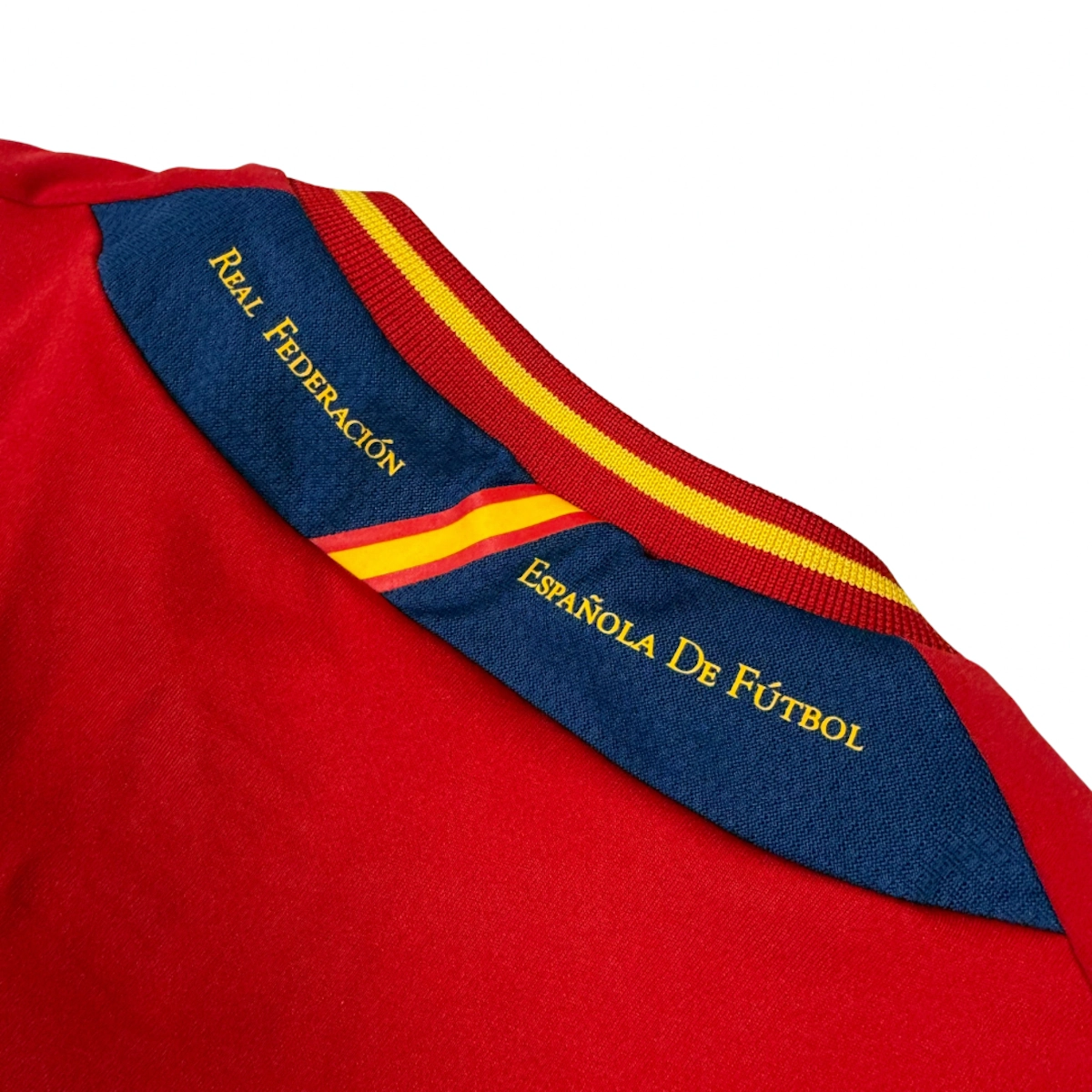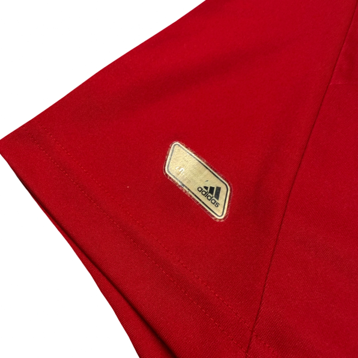Note IFS : 9/10 – Excellent état pour ce rare maillot historique de l’Espagne. La pastille Adidas au bas du maillot est un peu marquée par le temps, le reste est nickel. Couleurs traditionnelles de la Roja, Adidas respecte la sélection. On pense forcément à cette incroyable équipe composée d’innombrables stars du ballon rond.