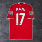 Note IFS : 9/10 – Excellente condition pour ce maillot domicile de Manchester United, noté sévèrement tant il frôle le 10/10. Flocage du légendaire Nani qui lui donne toute son aura, patchs Premier League champions 2010/11 en feutrine et flocage officiel PL. Une vraie dinguerie pour les fans des Red Devils. Quand tu vois ce maillot, tu vois les saltos de Nani après ses buts !