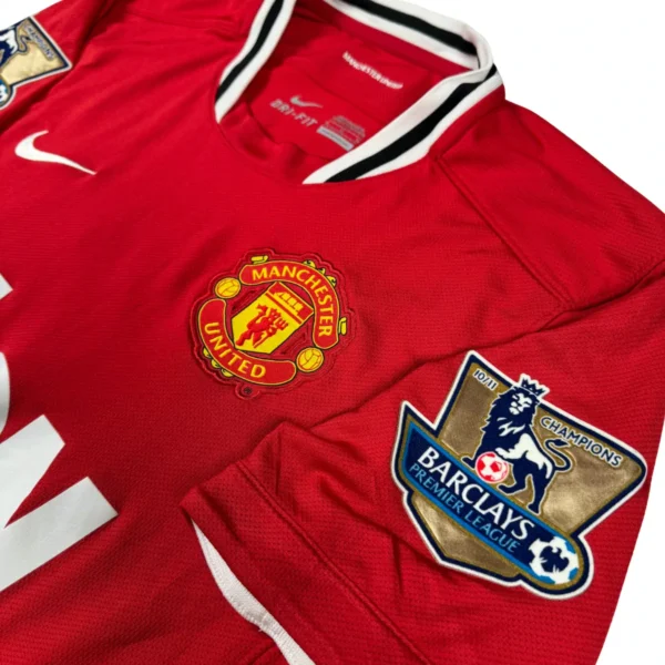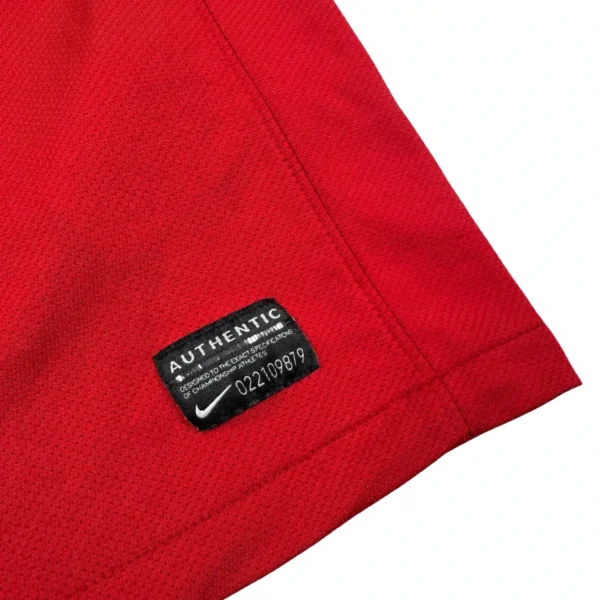 Note IFS : 9/10 – Excellente condition pour ce maillot domicile de Manchester United, noté sévèrement tant il frôle le 10/10. Flocage du légendaire Nani qui lui donne toute son aura, patchs Premier League champions 2010/11 en feutrine et flocage officiel PL. Une vraie dinguerie pour les fans des Red Devils. Quand tu vois ce maillot, tu vois les saltos de Nani après ses buts !