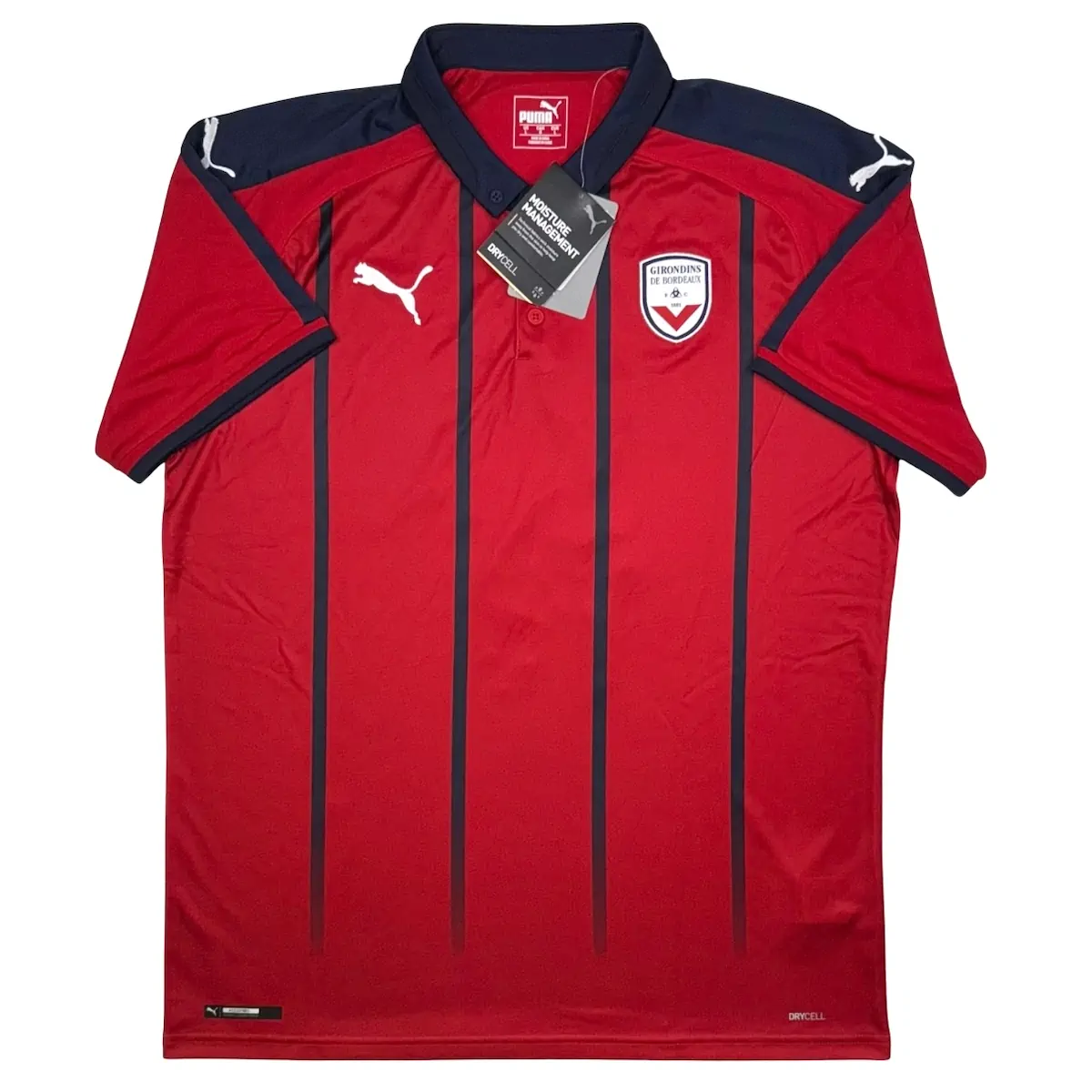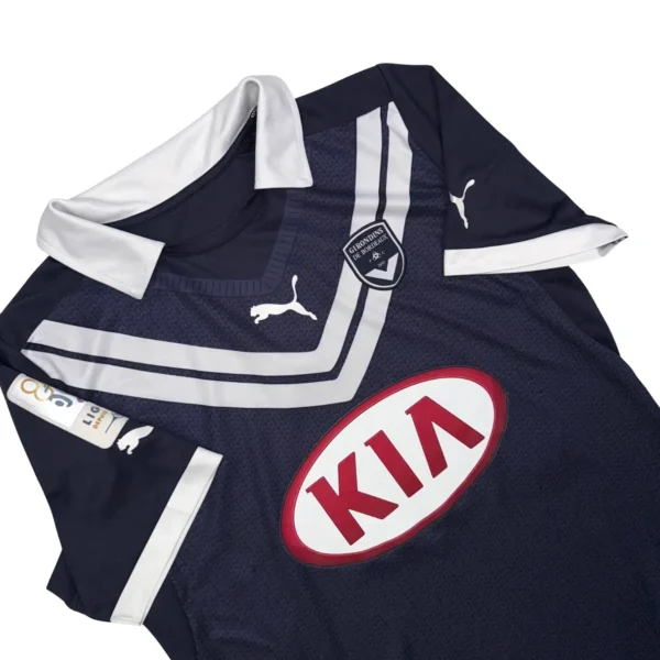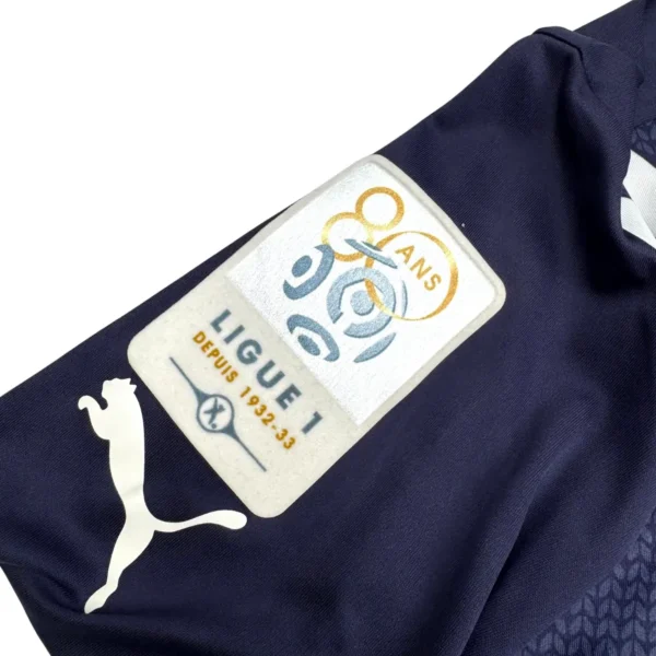Note IFS : 9/10 – Maillot domicile des Girondins de Bordeaux en excellent état, floqué avec le patch Ligue 1 spécial 80 ans en feutrine, légèrement décollé sur un coin. Une belle pièce en configuration complète Ligue 1, parfaite pour les collectionneurs des Girondins.