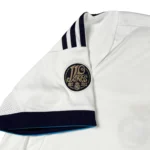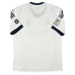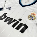 Note IFS : 8/10 – Maillot domicile du Real Madrid saison 2012-13 avec sponsor légèrement usé, mais parfaitement conservé pour le reste. Patch spécial des 110 ans du club sur la manche, une belle pièce chargée d’histoire pour les fans des Merengues. On pense forcément à CR7 à son prime.