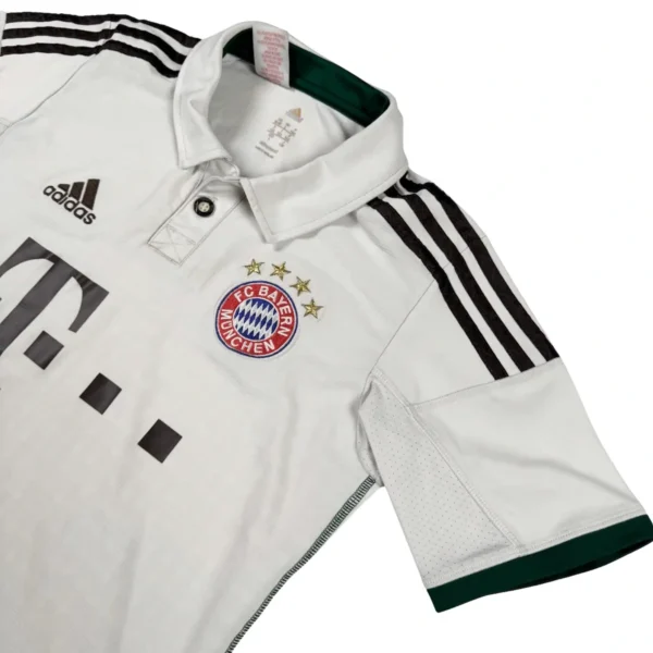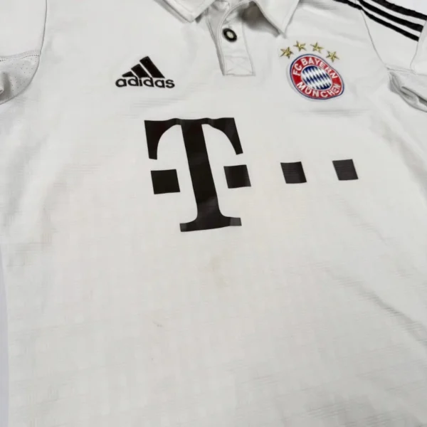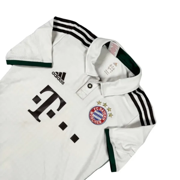 Note IFS : 9/10 – Excellente condition pour ce rare maillot vintage du Bayern Munich, juste quelques très discrètes traces sur la face avant (voir photos). Un maillot extérieur qu’on ne croise pas souvent, à vrai dire. Le détail sur les bandes Adidas au niveau des épaules est juste dingue.
