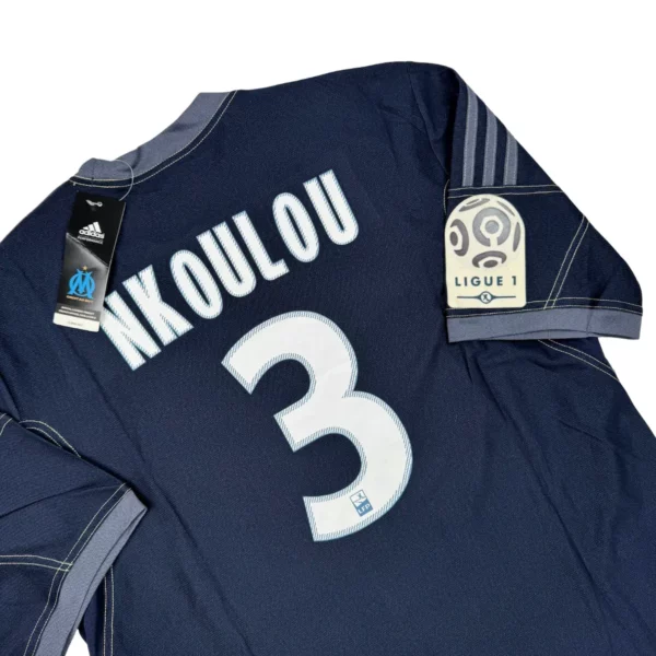 Note IFS : Neuf + étiquettes – Parfait état pour ce maillot de l’OM floqué Nicolas Nkoulou. Tout est d’origine, ultra propre, avec un petit détail : le « O » du flocage légèrement décalé si on y regarde de près. Présence du patch de la Ligue 1 en feutrine. Un superbe maillot, intact depuis plus de 10 ans, rare dans cette condition.