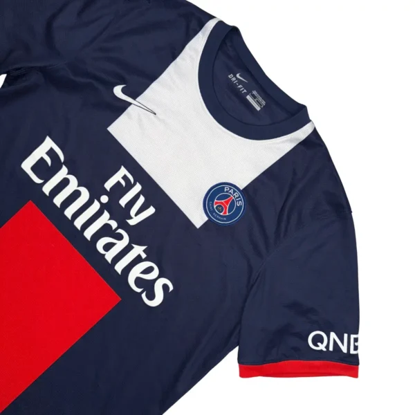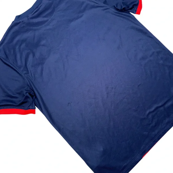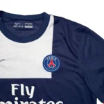Note IFS : 9/10 – Excellent état, juste quelques bouloches discrètes. Les sponsors sont nickels. Ce maillot, c’est direct un flash de Zlatan et ses dingueries en Ligue 1. Nike x PSG, souvent un sans-faute niveau design, et cette pièce en est la preuve.