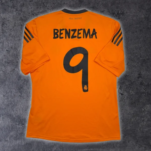 Note IFS : 9/10 – Maillot third du Real Madrid 2013 en excellent état. Sponsor à peine marqué par le temps, flocage Benzema comme neuf, tout comme le reste du maillot. Rare et recherché, une belle pièce pour les fans de la Casa Blanca et de KBNueve.