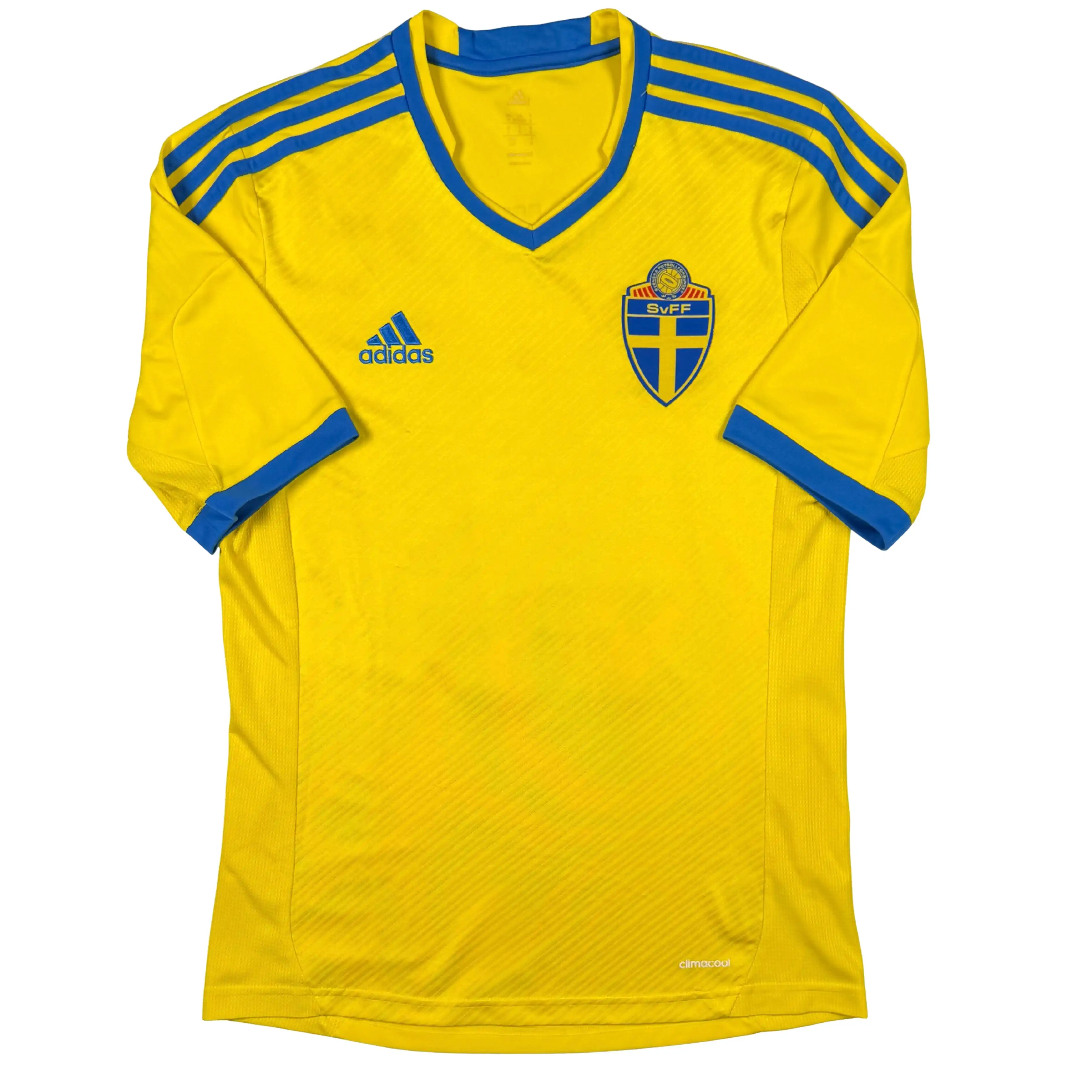 Note IFS : 9/10 – Excellent état général, avec quelques bouloches à signaler et un flocage de Zlatan Ibrahimović très légèrement craquelé, rien de méchant et totalement cohérent avec l’âge. Un maillot de la Suède floqué Zlatan, c’est toujours une bonne idée.
