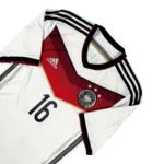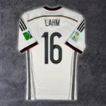 Note IFS : 9/10 – Excellent état pour ce maillot de l’Allemagne 2014/15. Trace très légère, visible uniquement à la lumière. Patchs Coupe du Monde 2014 impeccables et flocage de la légende Lahm comme neuf. Une superbe pièce de la Mannschaft.