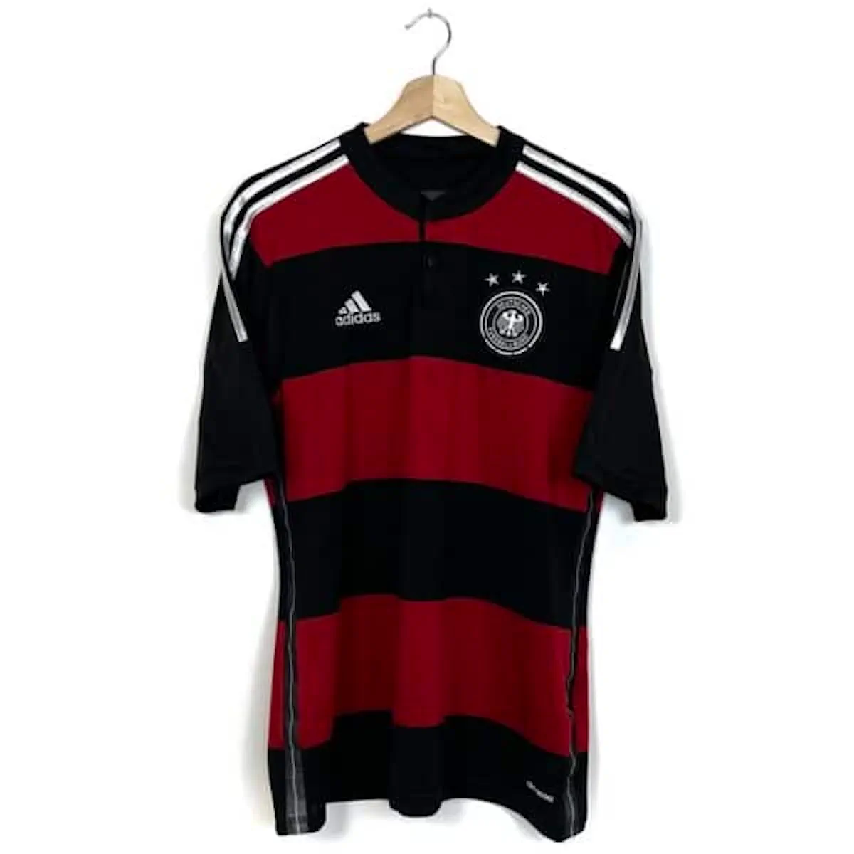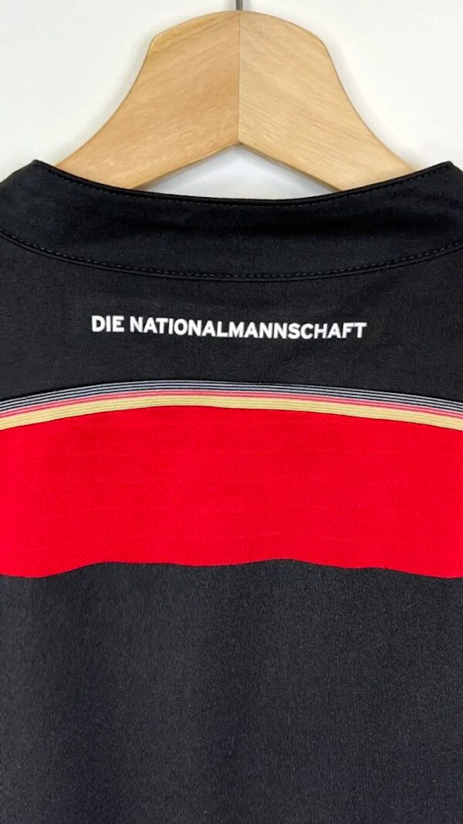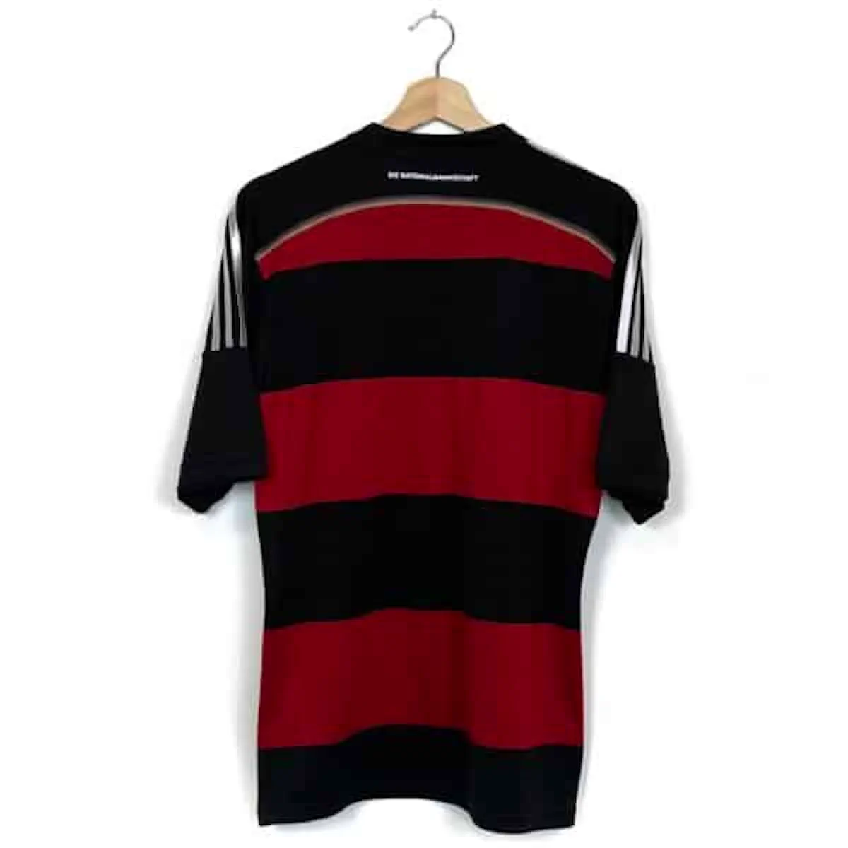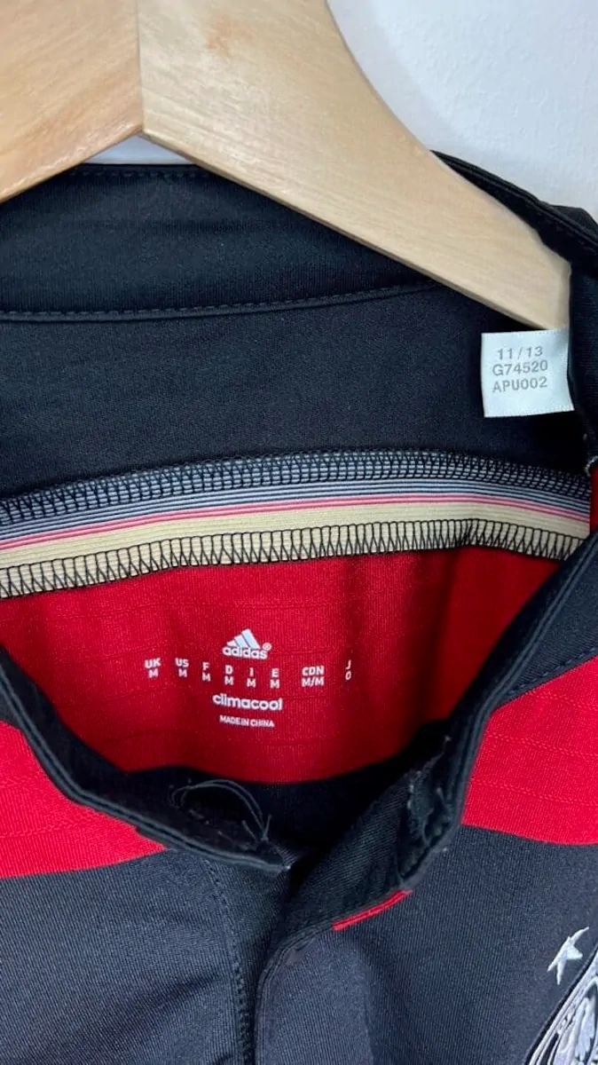 Note IFS : 10/10 – Parfait. Le maillot est comme neuf. Écusson brodé et logo Adidas en super état. Superbe design, maillot historique qui rappel forcément la gifle des Allemands infligée au Brésil (7-1).