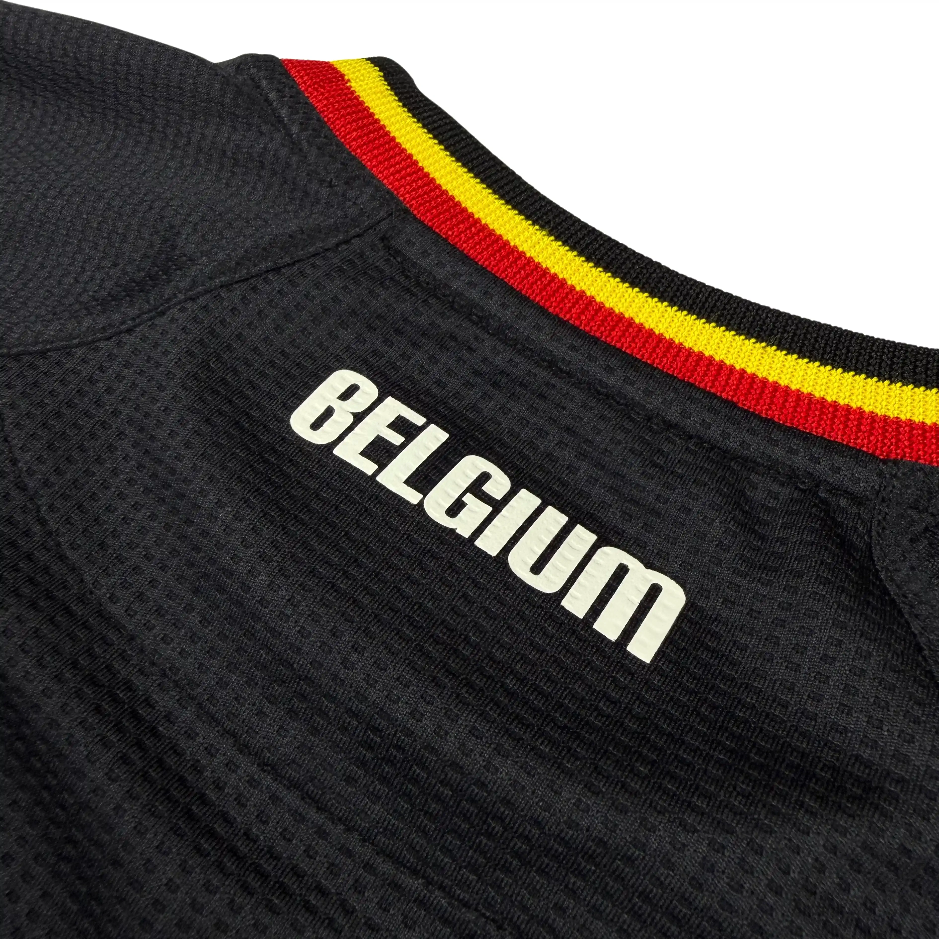 Note IFS : 9/10 – Excellent. L’ensemble du maillot est très bien conservé. Ce maillot taille assez moulant. Ce maillot officiel marquera l’arrivée des belges dans l’élite du football mondial.