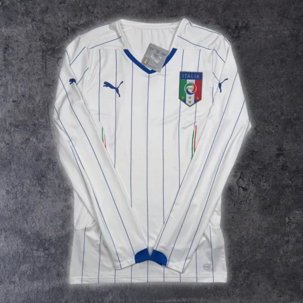 Note IFS : Neuf + étiquettes – Maillot pro de l’Italie en longues manches dans un état incroyable : plus de dix ans et toujours neuf ! Version joueur avec logos thermo, bandes anti‑dérapantes à l’intérieur et boutons de rechange fournis. Une vraie pépite pour les collectionneurs, exactement comme porté par les internationaux.