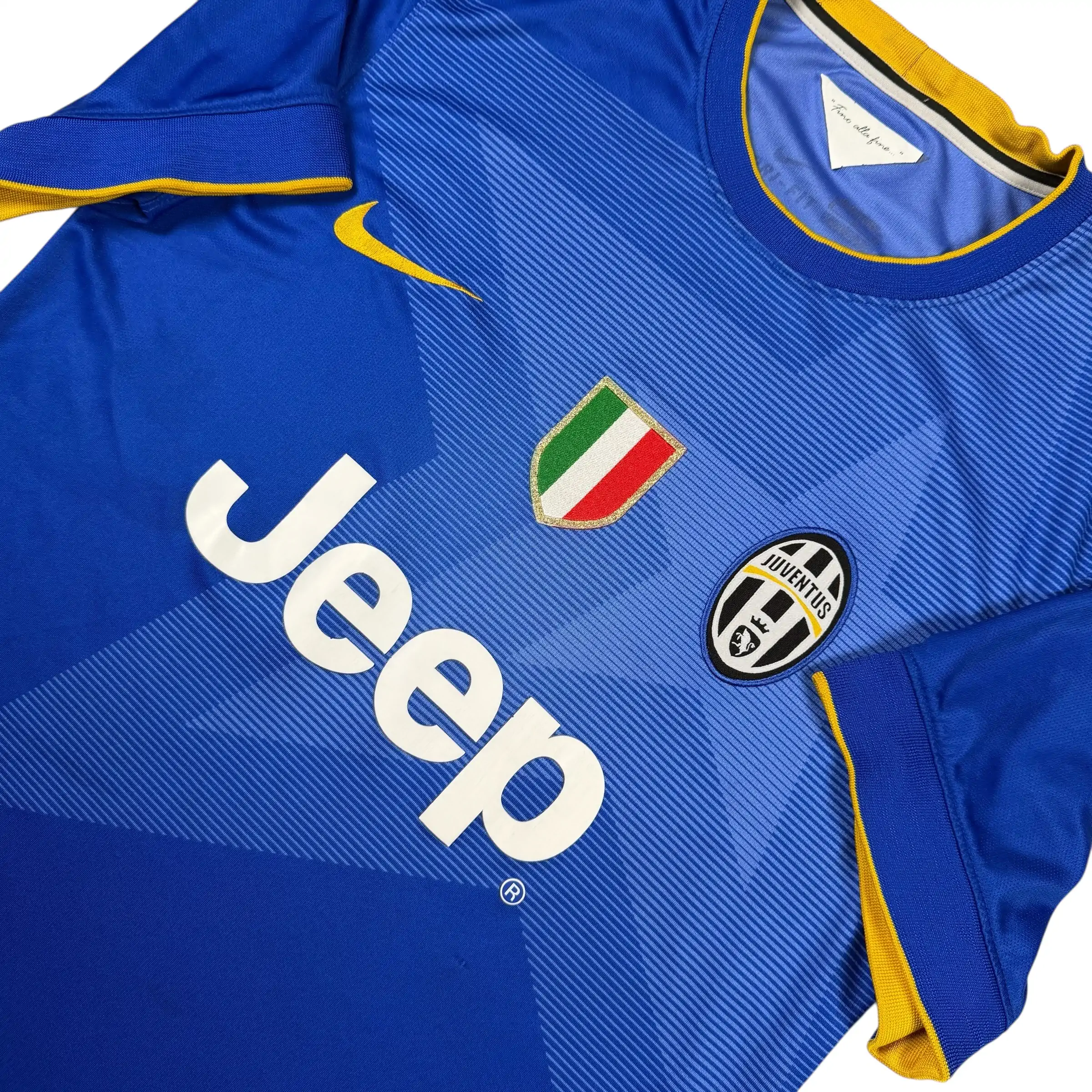 Note IFS : 8/10 – Bonne condition générale pour ce rare maillot vintage de la Juventus, l’étiquette du col se décolle légèrement mais reste invisible une fois porté, patch Scudetto présent sur le torse, design marquant et propre, Nike avec la Juve ça frappait fort, rien à redire.
