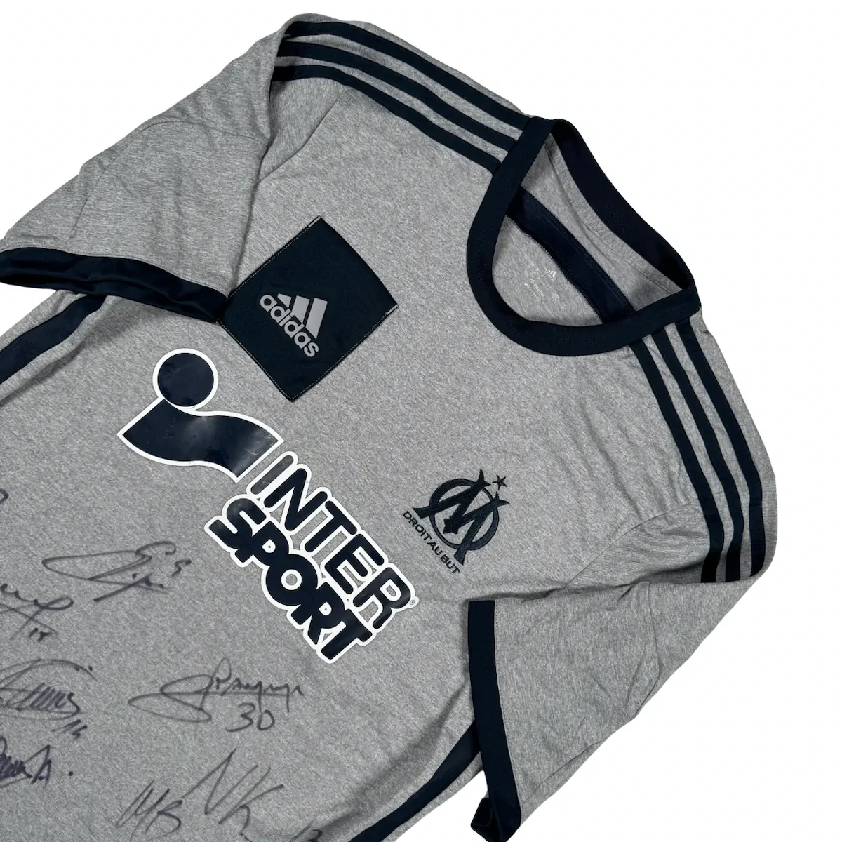 Note IFS : 9/10 – Maillot de l’OM signé par une bonne partie de l’effectif, et pas par les stagiaires du centre de formation. On a identifié les signatures de Nkoulou (3), Mandanda (30), André Ayew (10), Benjamin Mendy (23), Batshuayi (22), Thauvin (14), Gignac (9) et Imbula (25). Une belle brochette de joueurs qui ont marqué leur passage à Marseille. Gros morceau pour collectionneur, clairement pas le genre de maillot qu’on croise tous les jours.