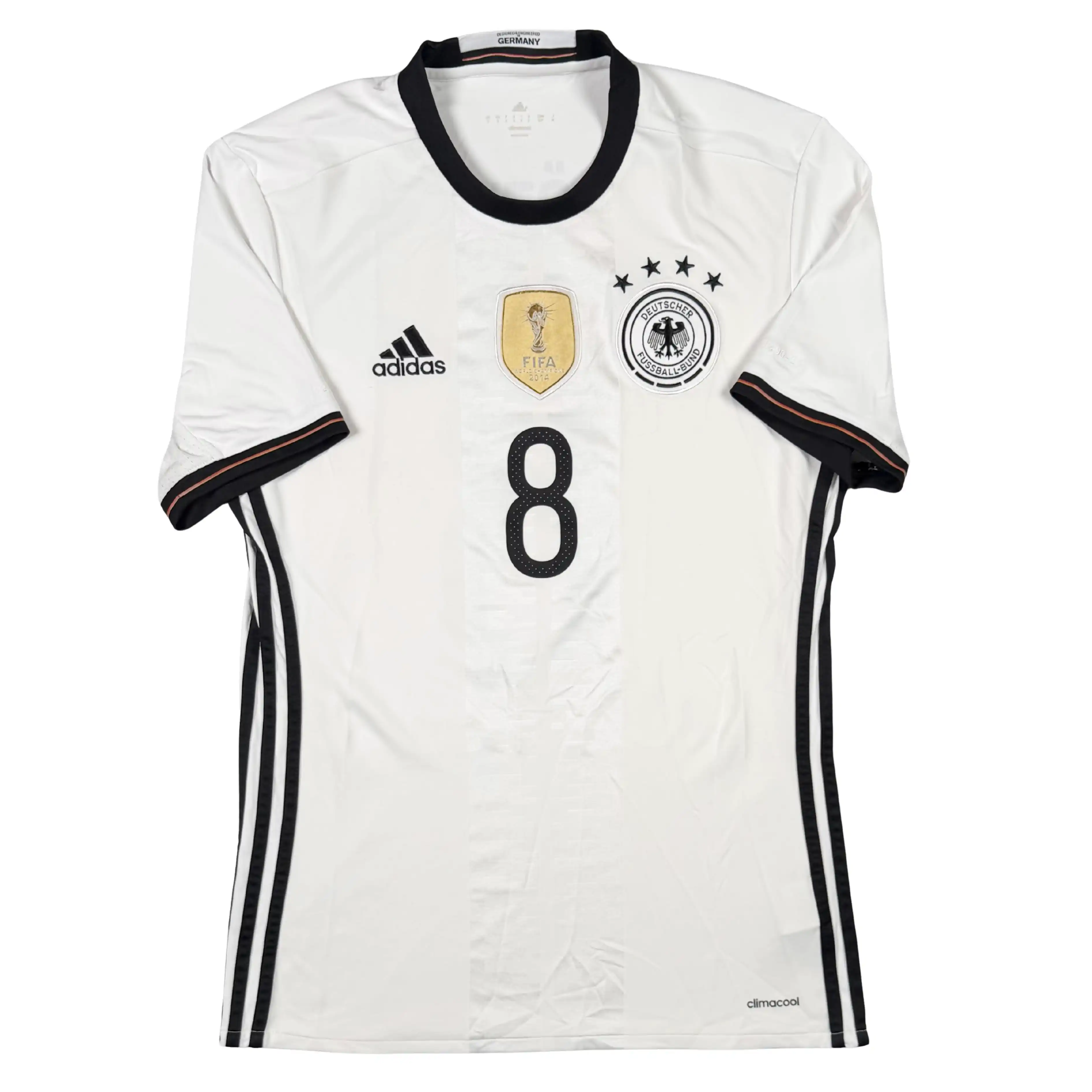 Note IFS : 9/10 – Excellent état général pour ce maillot de l’Allemagne, qui a plus de 10 ans et a super bien traversé le temps. Floqué Mesut Özil, histoire de finir le travail comme il faut, avec en bonus le badge World Champions 2014 sur le torse. Un maillot chargé d’histoire, propre, et toujours aussi fort visuellement.