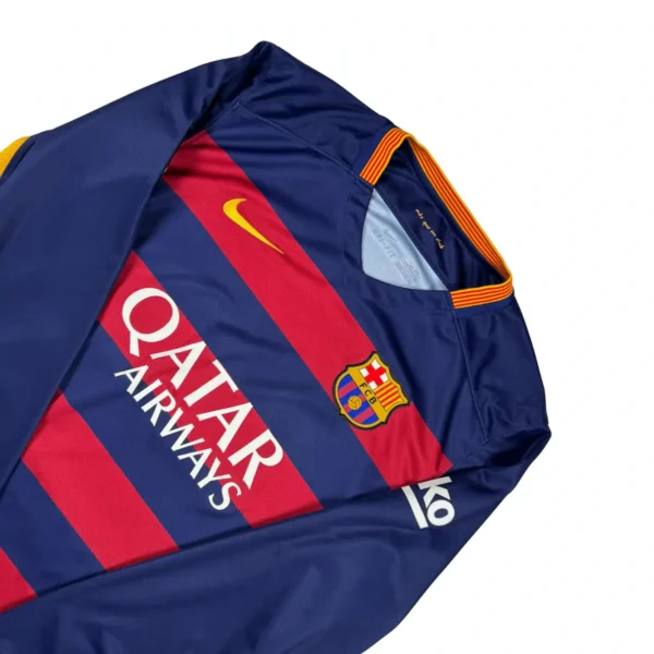 Note IFS : 9/10 – Ensemble domicile du Barça en parfaite condition, composé du maillot manches longues et du short assorti, tous deux floqués Jordi Alba. Un set complet et atypique, bien différent des habituels Messi ou Neymar. Plus de 10 ans après sa sortie, ce combo complet avec flocage sur le short est devenu une vraie rareté pour les fans blaugrana.