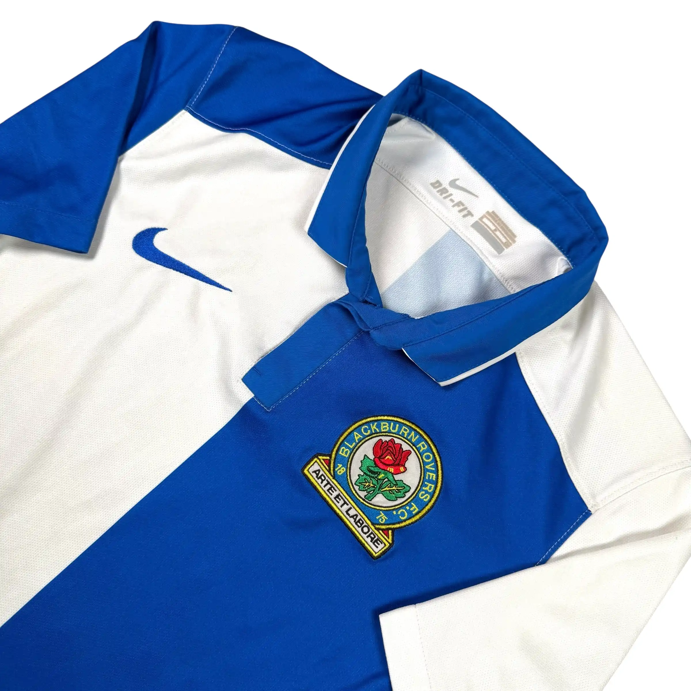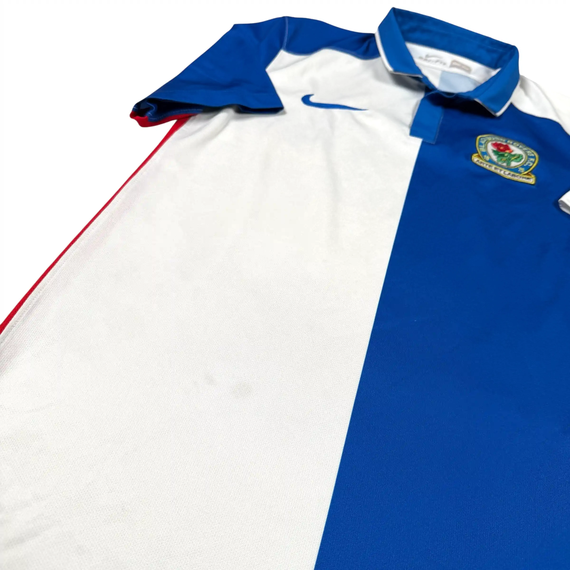 Note IFS : 8/10 – Maillot de Blackburn Rovers en bon état général, 2-3 bouloches et une petite trace au dos peu visibles, rien d’anormal pour son âge, un modèle atypique d’un club qu’on ne croise pas souvent, une pièce qui sort du lot.