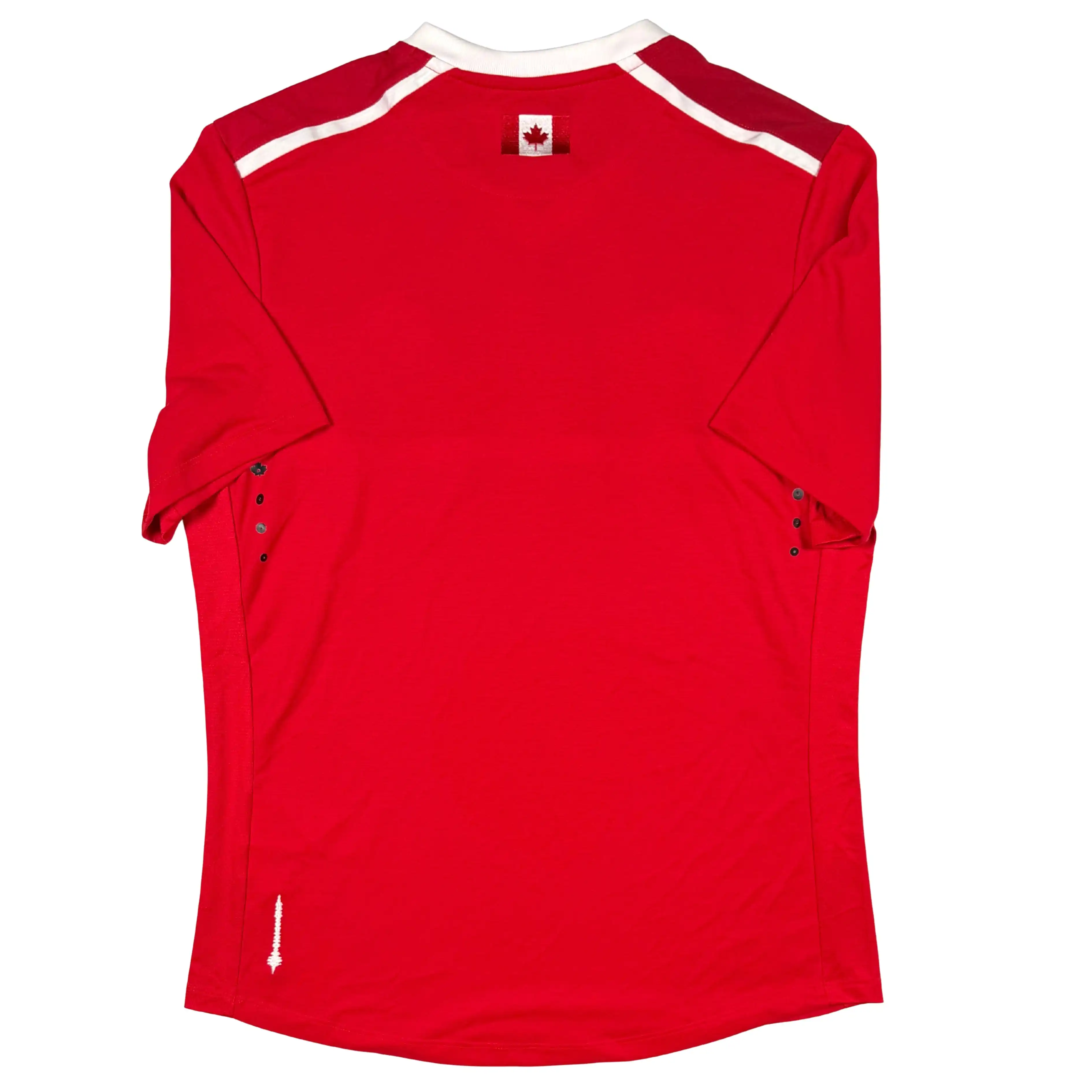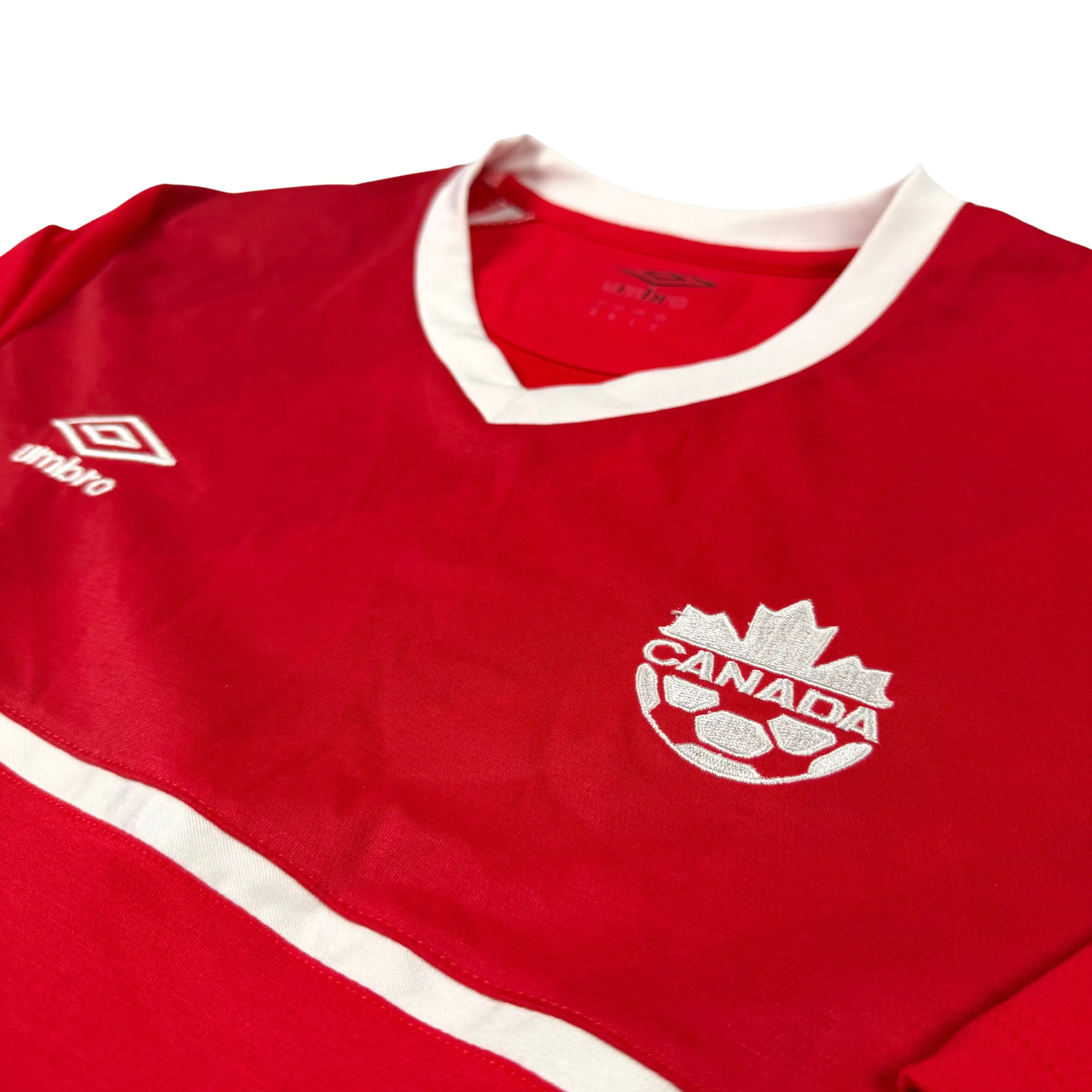 Note IFS : 9/10 – Maillot rétro du Canada de plus de 10 ans signé Umbro, avec de beaux détails comme le drapeau brodé à la nuque et les aérations latérales ornées de la fameuse feuille d’érable, symbole emblématique du pays, chez IFS on aime clairement ce genre de détails discrets.