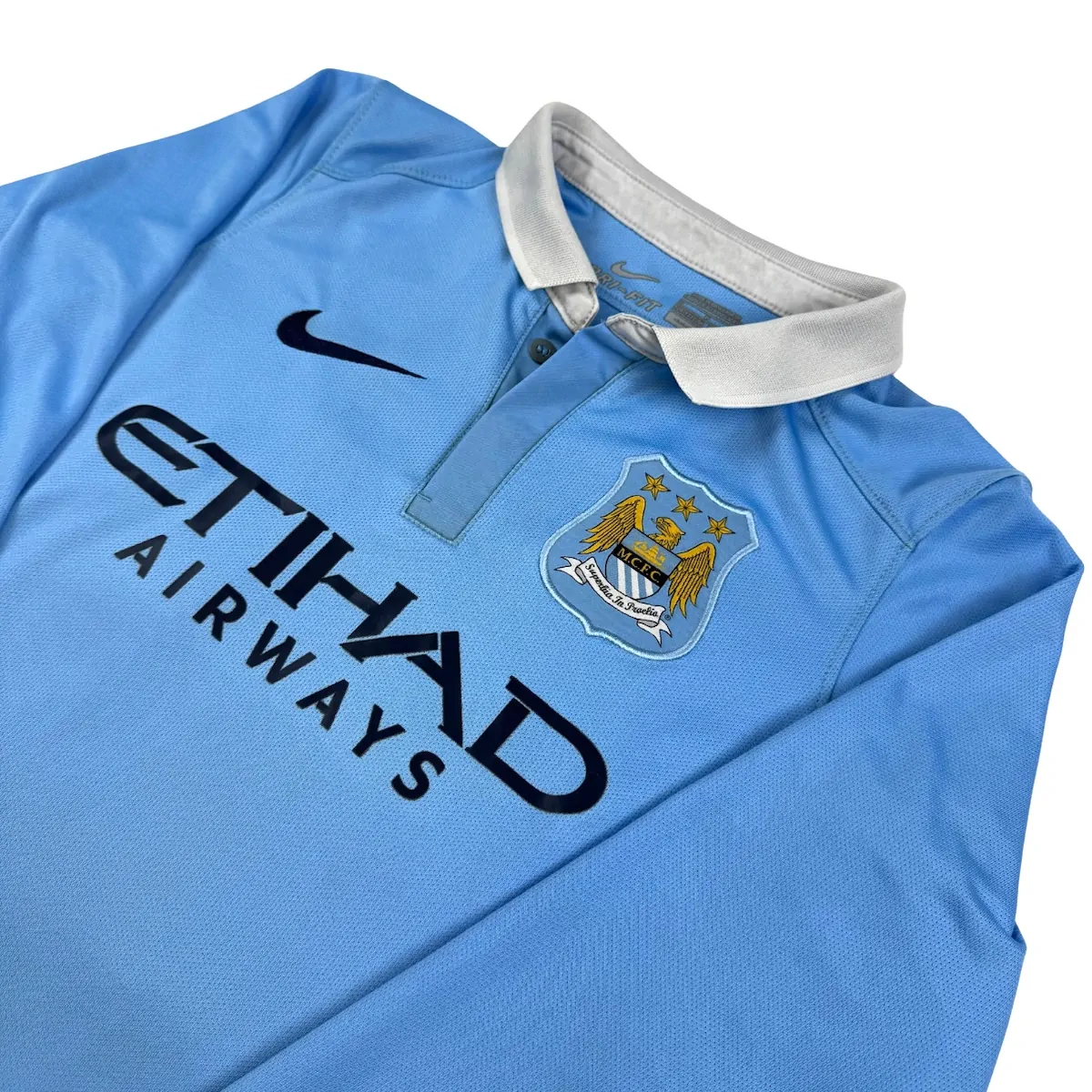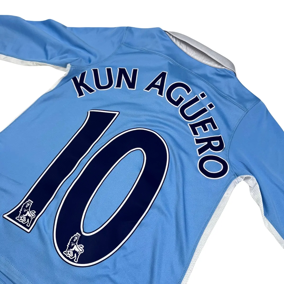 Note IFS : 9/10 – Excellent. Le flocage est un brin usé et est une version adulte, d’où la taille importante de l’impression. L’ensemble de ce maillot en longues manches et hyper bien conservé. Présence de l’ancien écusson de City.